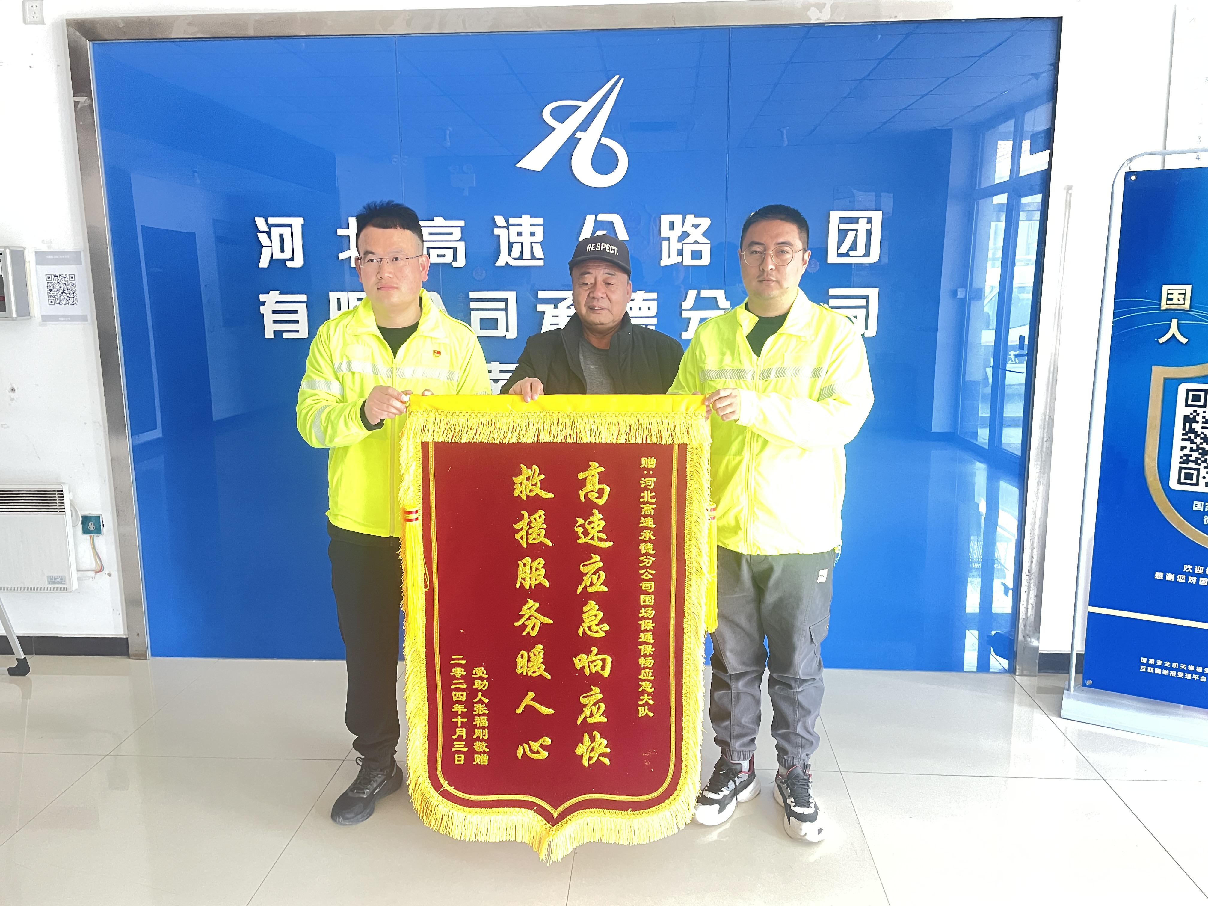 “车子突发故障,在隧道内打不着火了,在百感交集时,你们就到了,实在太感谢了。”11月7日,承德分公司围场保通保畅应急大队收到了来自驾驶员张先生送来一面锦旗,并对工作人员的紧急救助连声致谢。