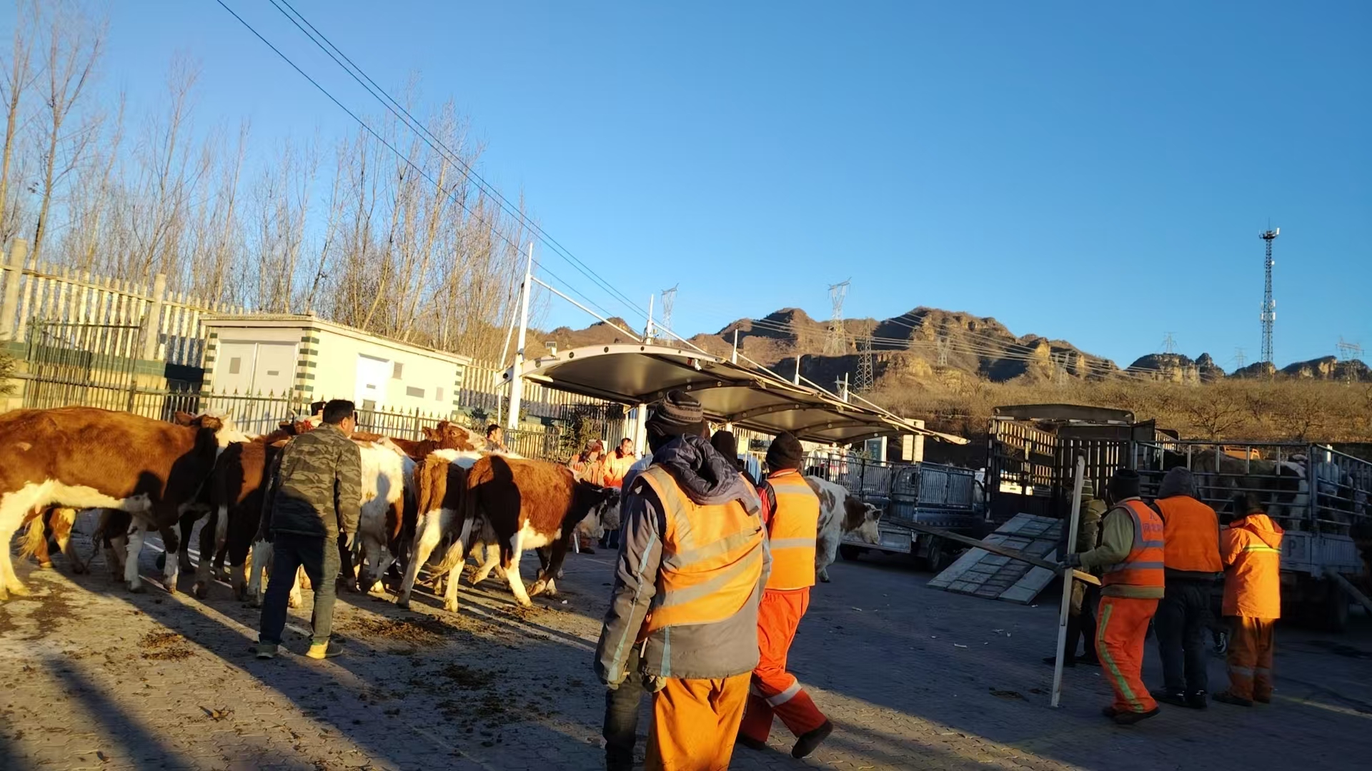 救援现场,采取两人一组、众人合围的方式,小心翼翼地将牛群合拢,并沿着车道逐步驱赶到路肩。经过两个多小时的努力,牛群终于被安全转移至兴隆服务区,并用所有车辆将其围住。与此同时,养护人员协助车主对车辆进行检修,确保能够安全装载牛群。早上7时左右,经过紧张的准备工作,车主开始将牛群装车。救援人员在一旁协助,确保每头牛都能安全、顺利地回到车厢内。最终,所有牛群都被成功装车,车主对所有救援人员的及时帮助表示衷心感谢。