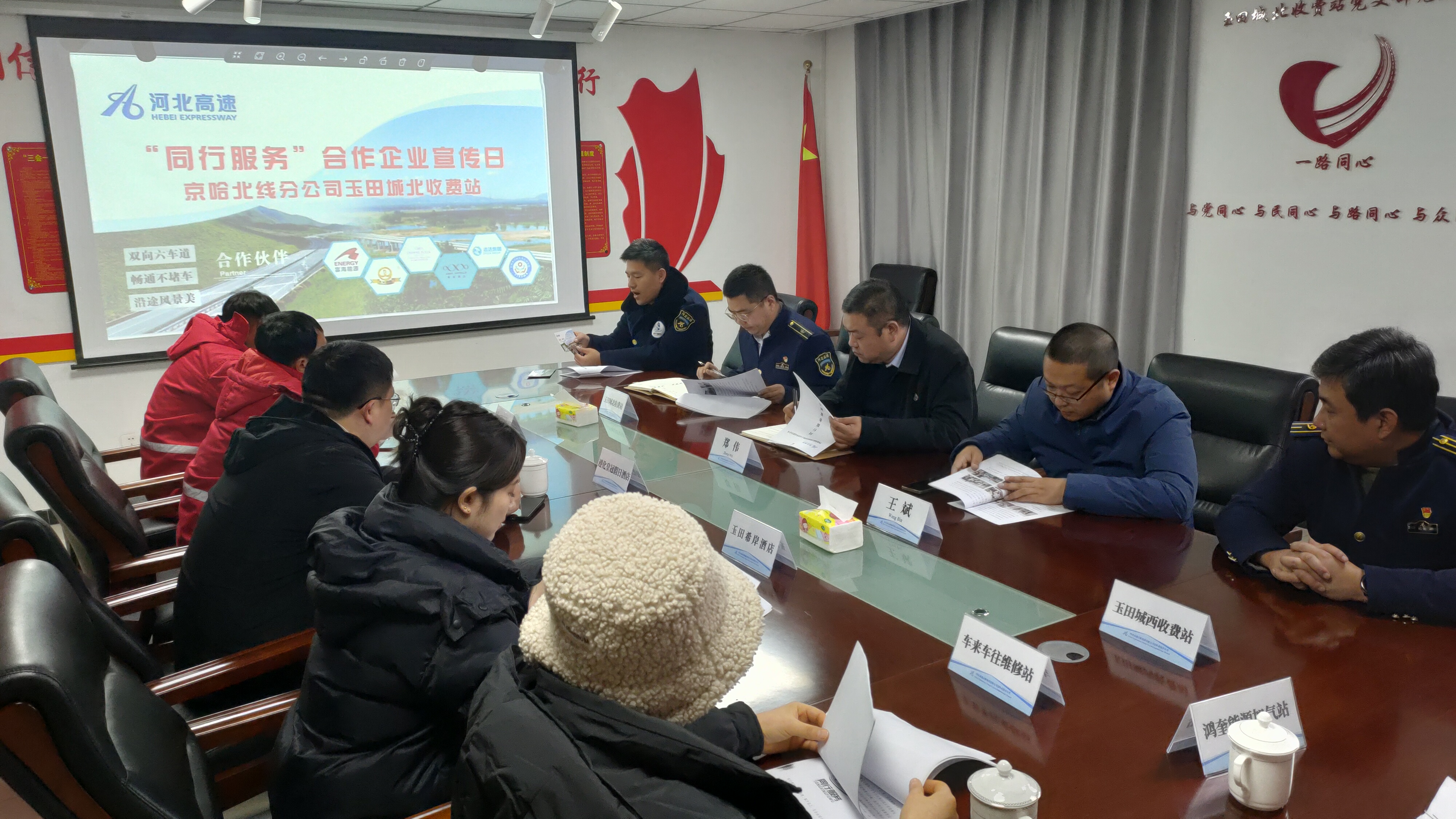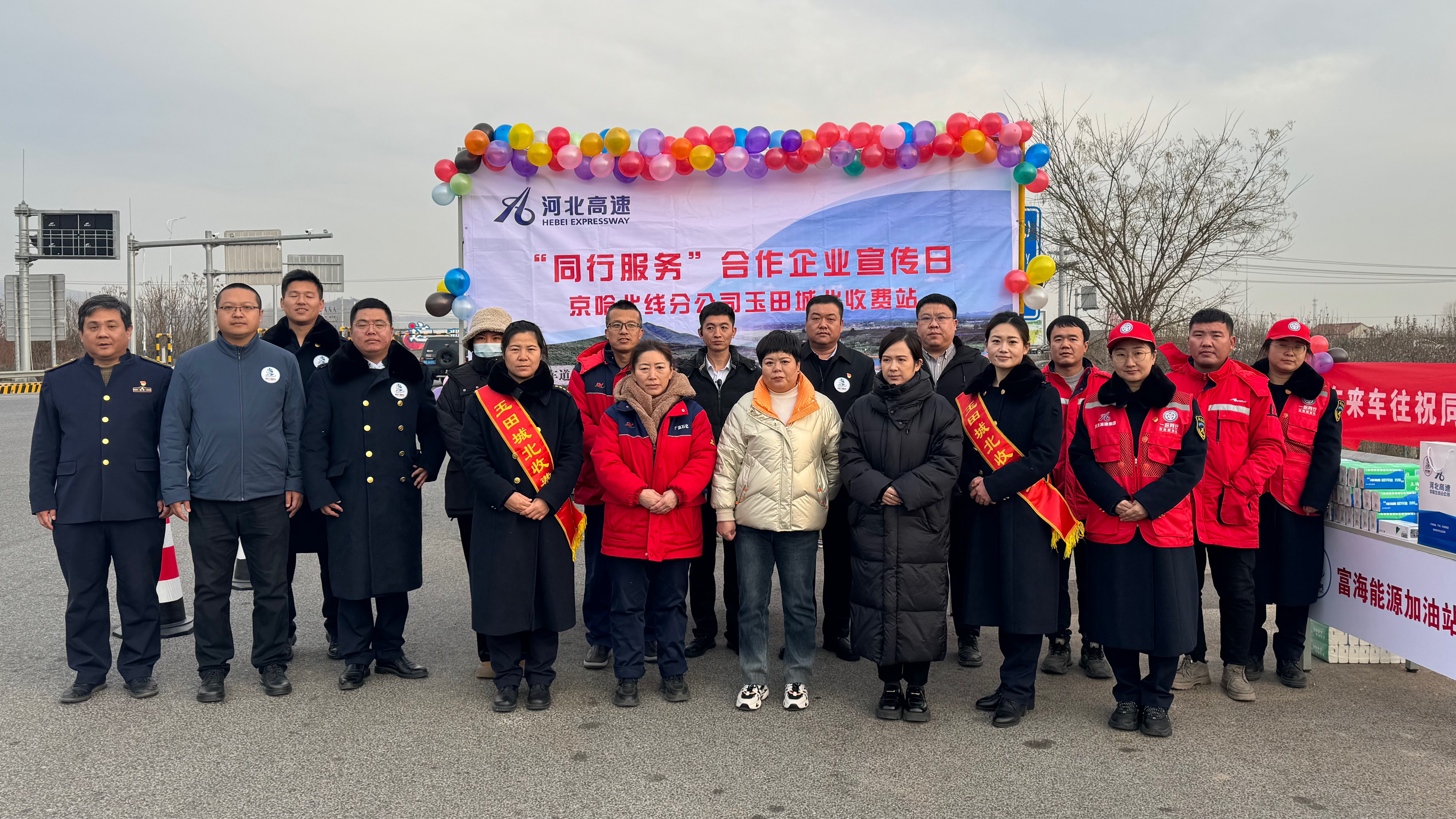 为进一步提升京哈北线分公司“同行服务”品牌知名度和影响力,促进品牌建设再提升,展现“同行服务”良好品牌形象,12月19日下午,玉田城北收费站联合遵化皇冠假日酒店、玉田希岸酒店、富海能源加油站等属地知名企业,在玉田城北收费站开展“同行服务”系列活动。