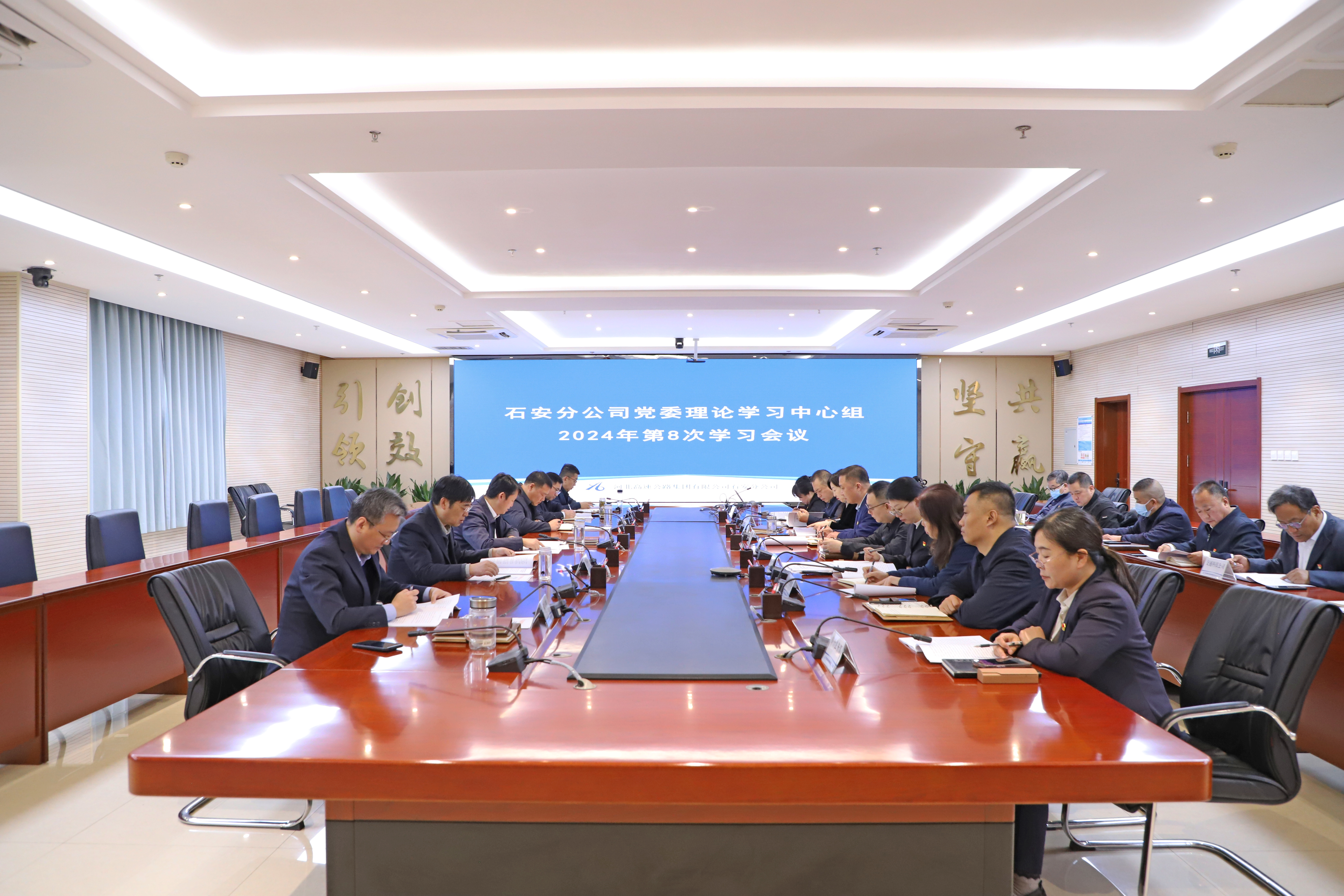 12月26日,石安分公司党委召开理论学习中心组2024年第8次学习会议,分公司党委书记陈园明主持并讲话,领导班子成员杨龙、李志强、任忠杰、陈东坡、石伟出席。
