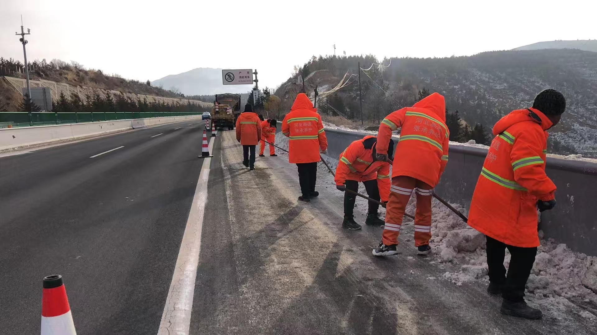 春运之际,凛冽寒冬。张承、延崇高速两旁银装素裹,宛如冰雪天堂。唯余黑亮的路面和身着橘衣的养护人,默默绽放在风雪中,坚韧不拔、傲雪丛生。