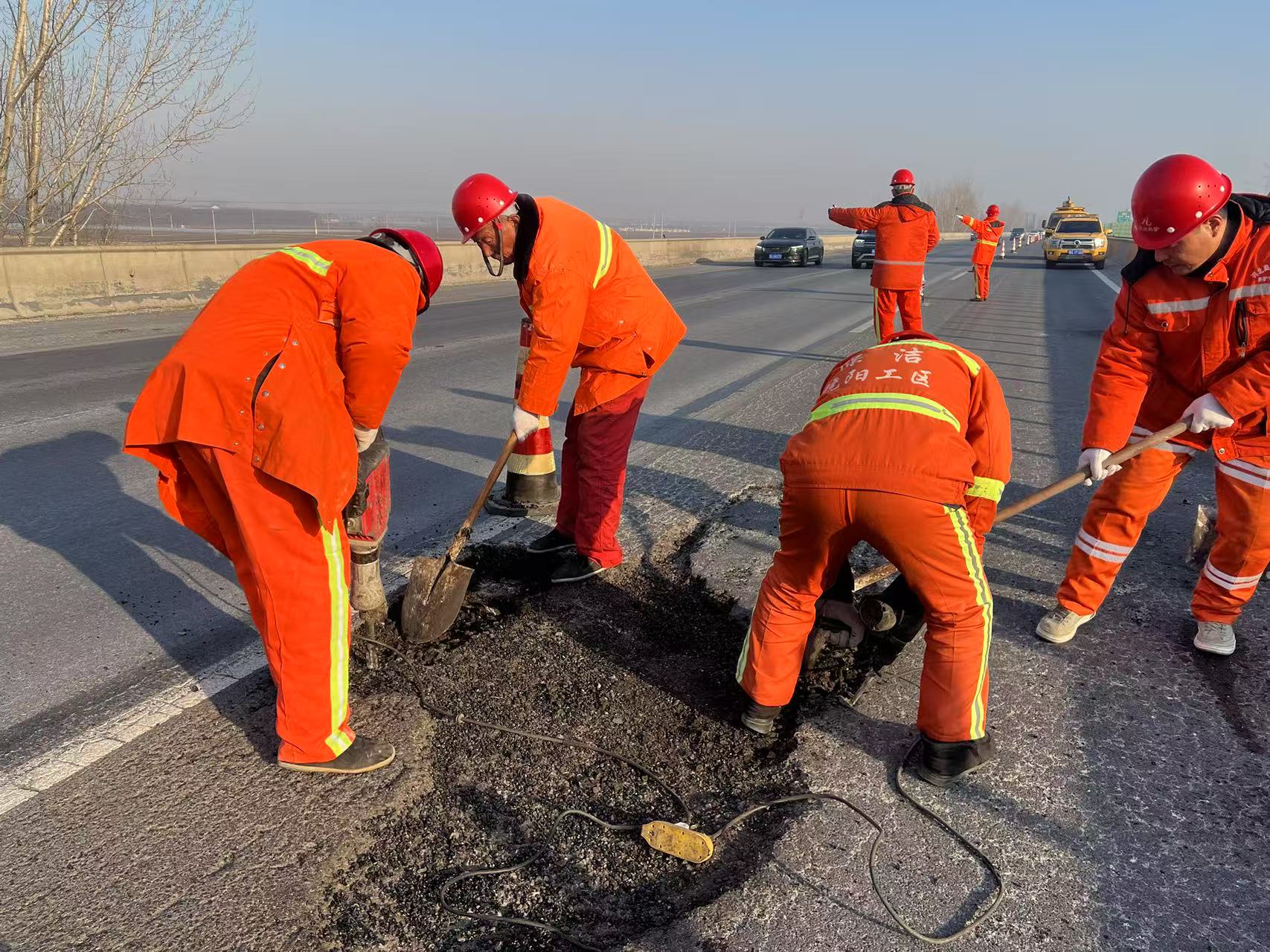 在全体养护人员的辛勤努力下,春节期间集团公司所辖路段通行状况良好,司乘人员归家之路变得更加顺畅和安全。当车辆疾驰而过时,或许很少有人注意到那些身穿橙色工作服的养护工人,他们不仅是高速公路的守护者,更是人们归家路上的温暖陪伴。