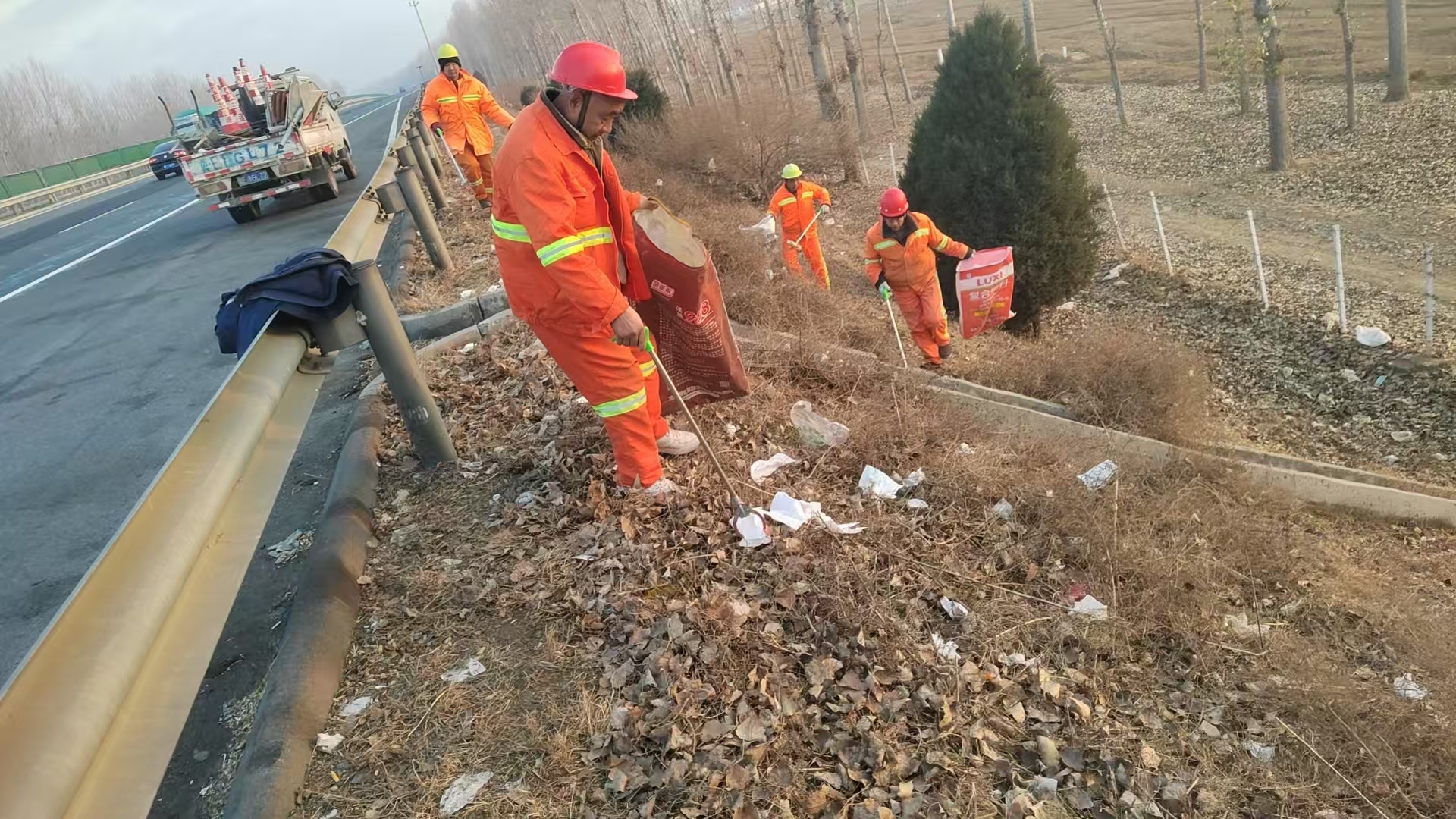 春节期间,养护人员像平日一样,提着编织袋在边坡捡拾白色垃圾。他们笑着说,“这白色垃圾太碍眼了,大老远就能看到,大过年的司乘看见多不好。”春节期间,高速公路车流量增大,保持路容路貌整洁美观至关重要。养护分公司加大节日期间清扫保洁力度,提高清扫车作业频率,加派人员对边坡、互通垃圾进行清除,提升路容路貌,为司乘人员营造干净整洁的出行环境。