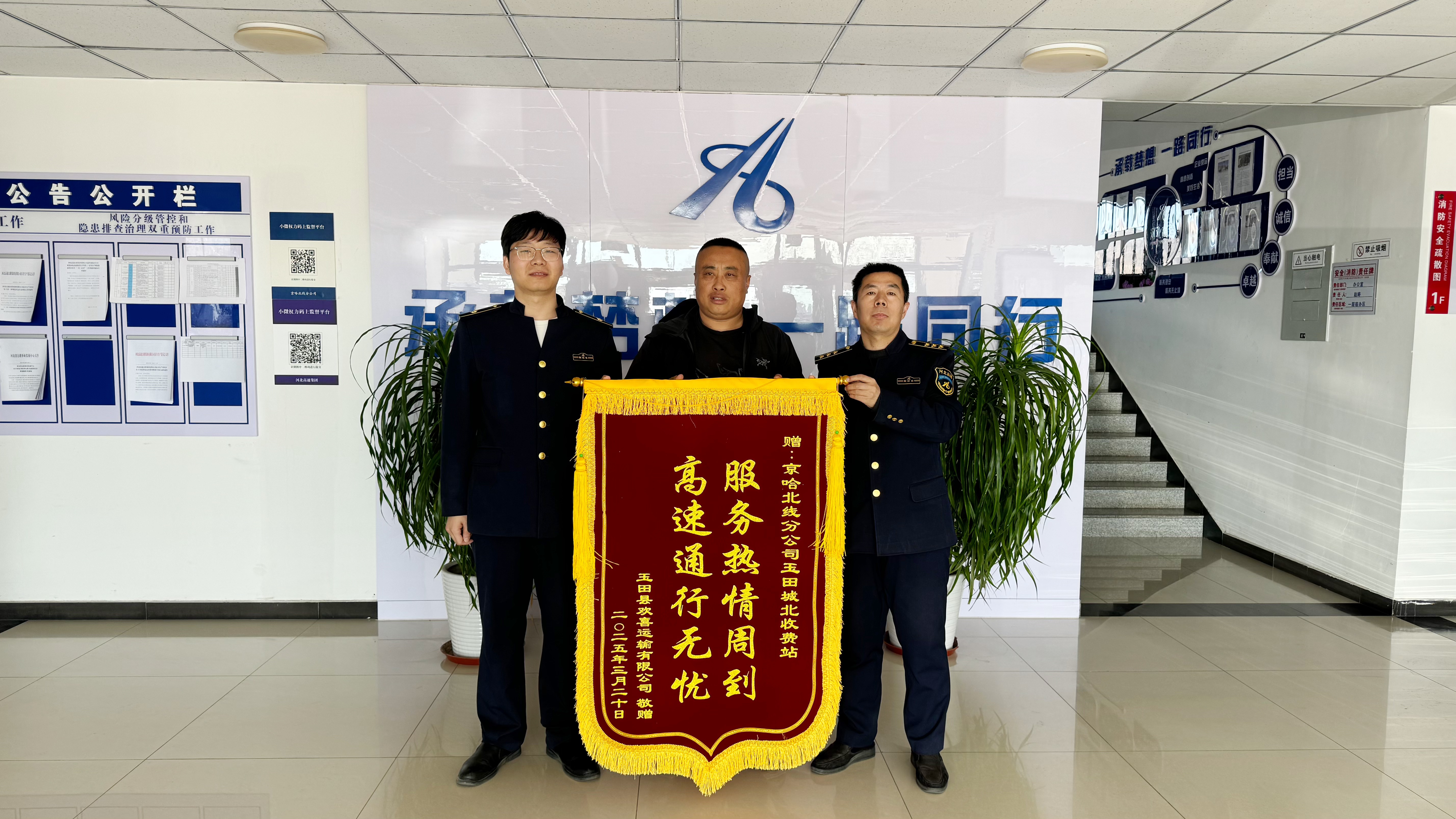 近日,玉田县欢喜运输有限公司将一面绣有“服务热情周到 高速通行无忧”的锦旗送到京哈北线分公司玉田城北收费站,对京哈北线分公司长期以来提供的“一对一”贴心服务表达诚挚感谢。这面锦旗不仅是对京哈北线分公司服务质量的肯定,更是对“同行服务”品牌建设成效的高度认可。