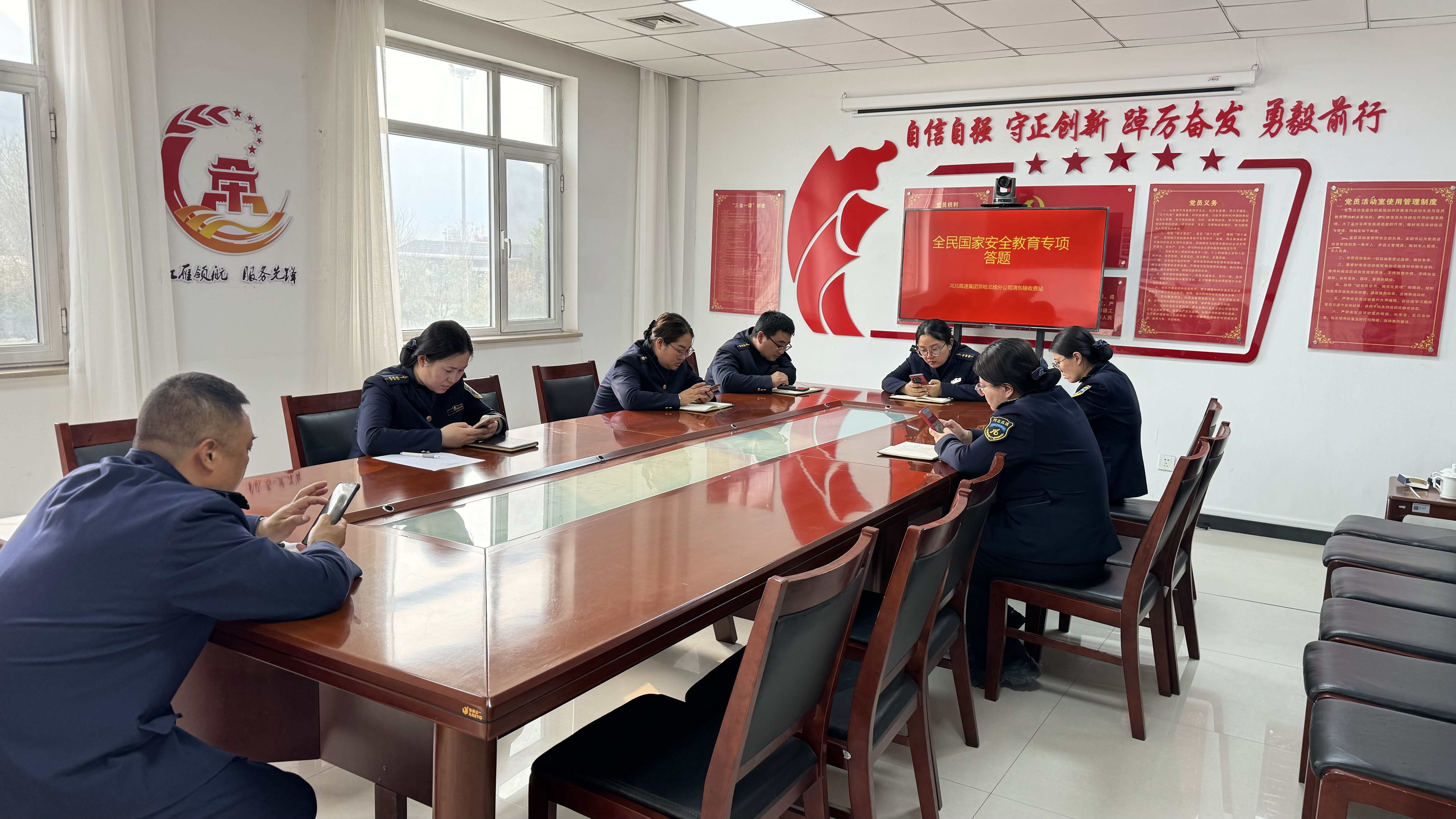 为深入贯彻落实习近平总书记关于全面加强国家安全教育的重要指示批示精神,推进国家安全法治宣传教育走深走实,近日,清东陵收费站积极开展了一系列主题鲜明、内容丰富、形式多样的国家安全主题活动,引领职工坚定不移走中国特色国家安全道路,切实增强忧患意识和使命担当。