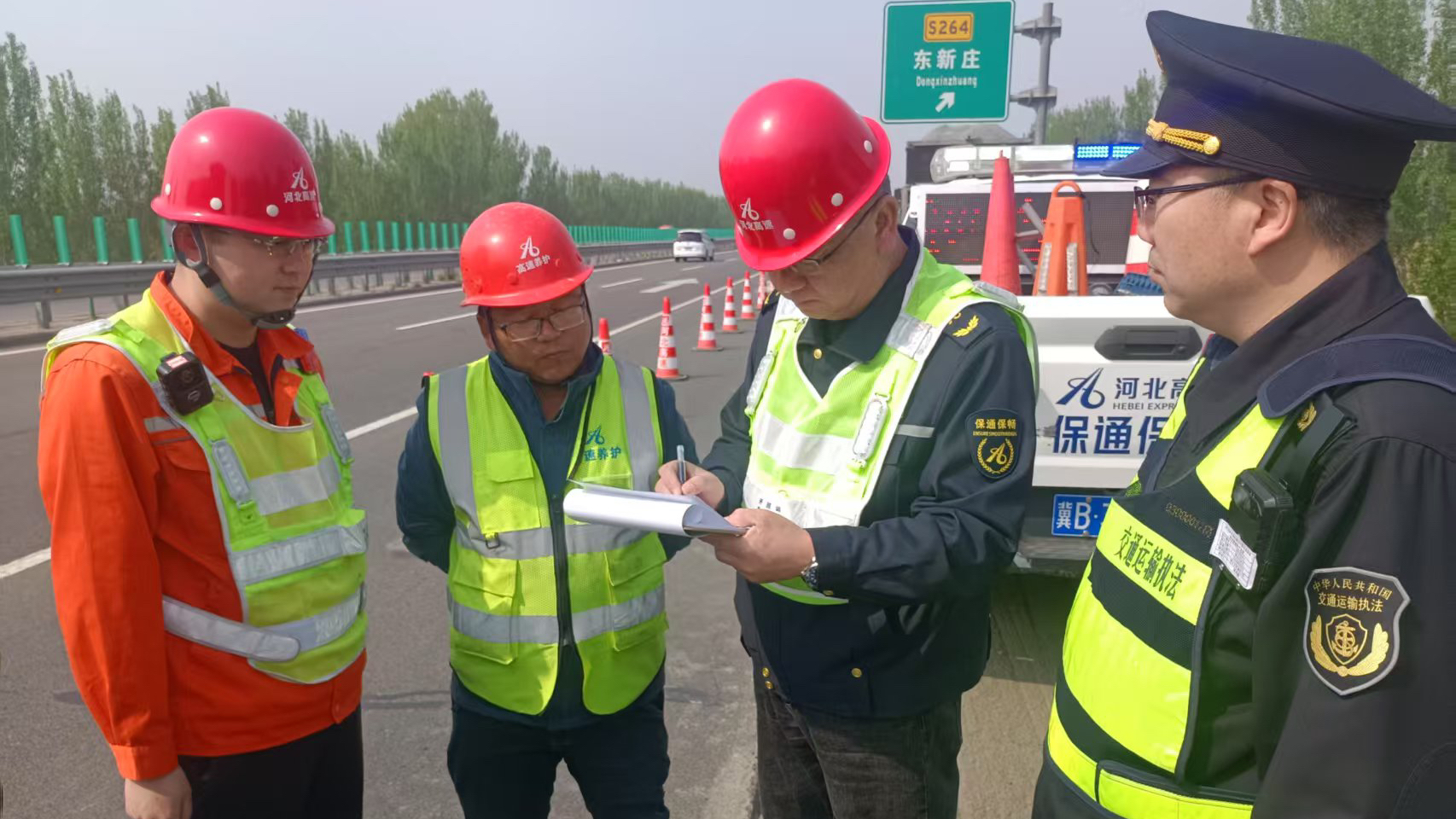 二是联勤路政排查,夯实作业安全。指挥调度中心联合高速路政遵化大队对京秦高速(G0121)东新庄互通C匝道和A匝道左幅专项施工进行安全检查。检查人员根据《施工现场监督检查记录》逐条对施工现场作业区布置是否合理、安全警示标志标牌是否齐全、个人防护是否到位等问题进行了全方位的查看。