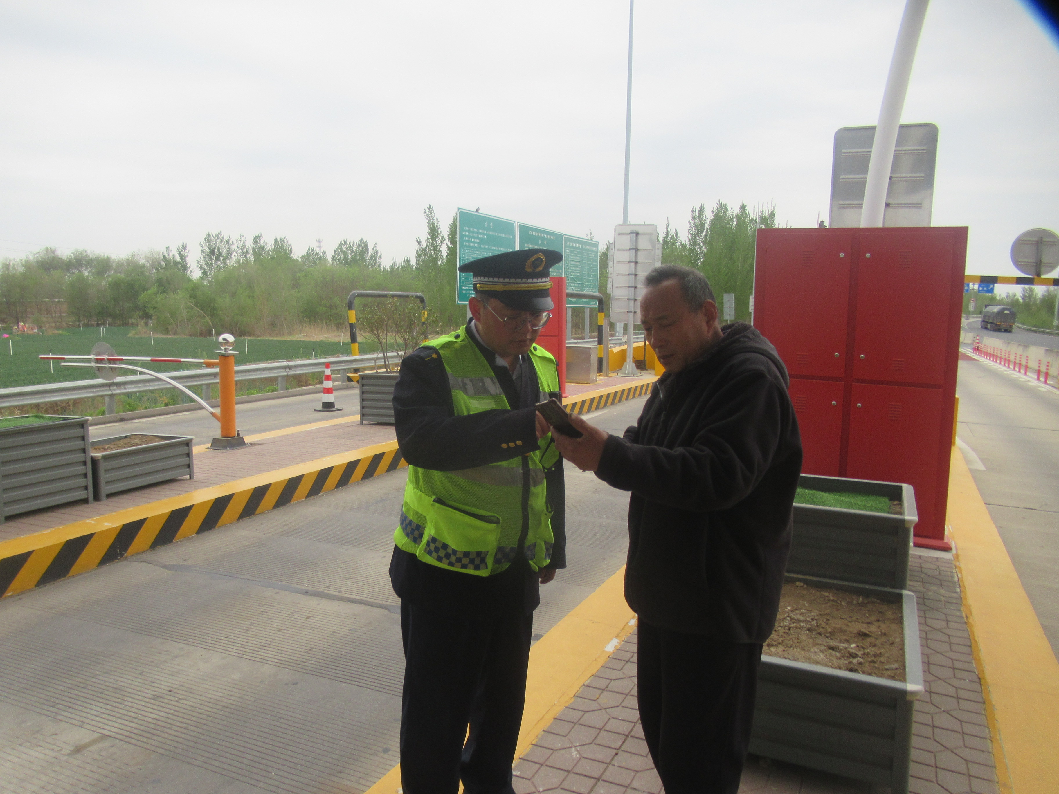 4月18日下午,一辆小客车驶至冀州南收费站入口广场后突然停下。司机神情焦急地跑向岗亭,当班发卡员立即上前询问情况,同时通知班长和疏导员将车辆引导至广场安全区域。