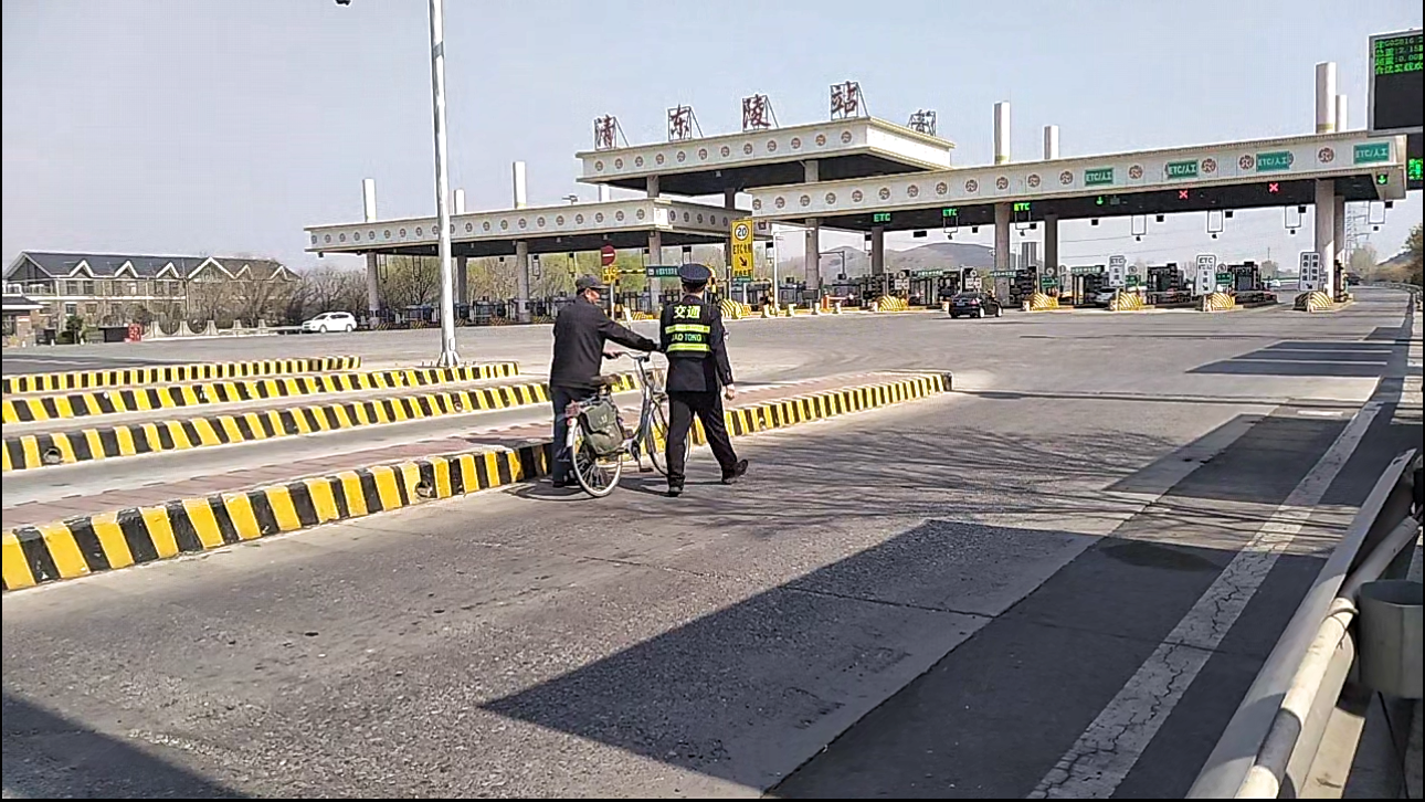 忽然,当班疏导员发现有一位推着老式自行车的老人满脸焦急的在入口称重车道附近徘徊。疏导员立即快步走上前,轻声询问道:“大爷,您是不是需要帮助?”老人一脸无助,声音颤抖地说:“小伙子,这不孩子们放假了,我想去小辛庄村看看外孙子,不知道咋着走这来了,一下懵了,不知道该往哪走了。”疏导员一边安抚老人情绪,一边慢慢为老人指引方向,说:“大爷,您顺着这条路一直往前走,第一个岔道口右转再直走就行了,您骑车一定注意安全啊。”老人听了不断道谢,激动地拉着疏导员的手说:“小伙子,麻烦你啦,谢谢,谢谢。”在疏导员再三叮嘱骑车安全的声音中,老人按照指引出发了。
