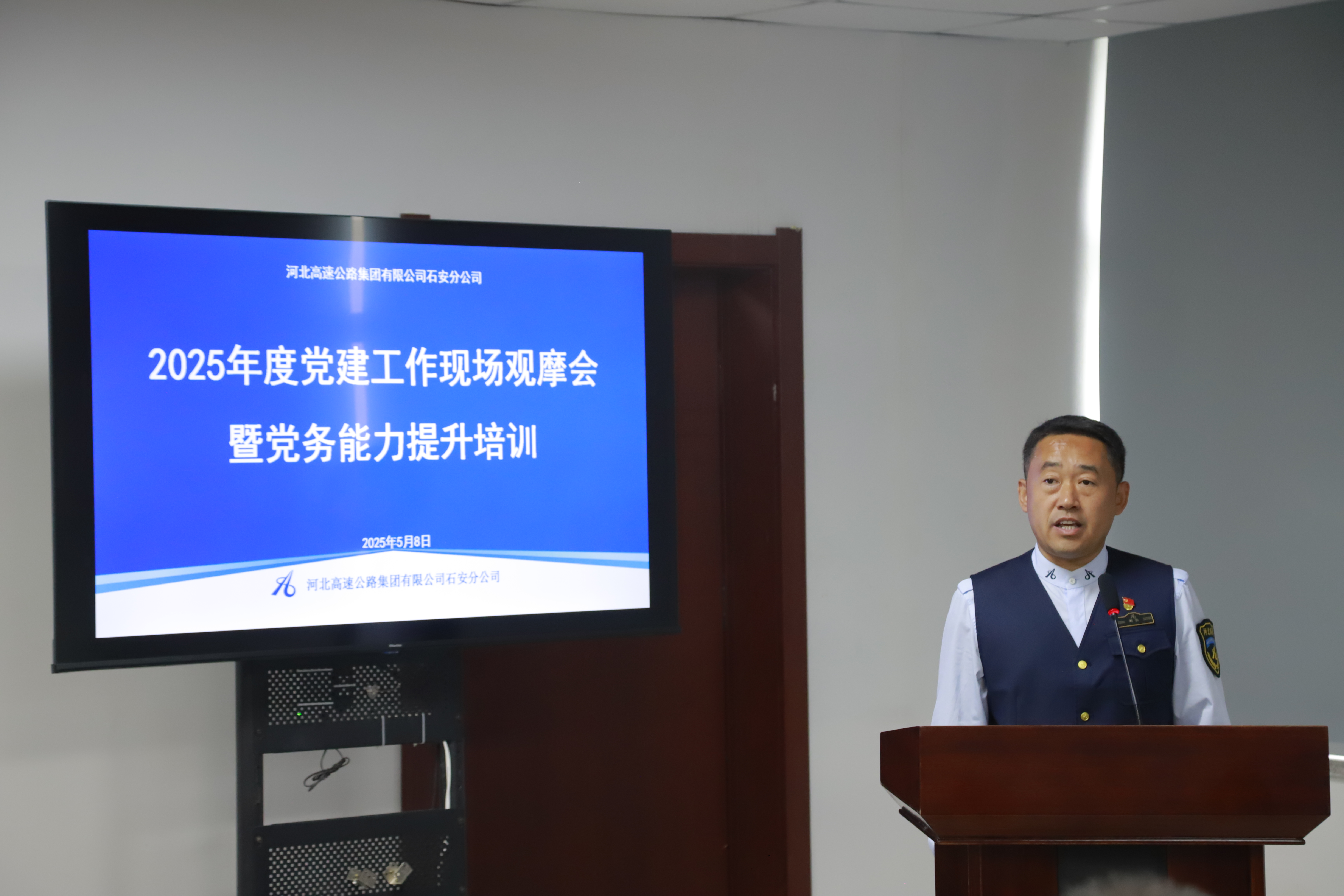 5月8日,石安分公司在石家庄南收费站组织召开党建工作现场观摩会暨党务能力提升培训,分公司党委书记陈园明主持并讲话,党委委员、副总经理陈东坡出席。