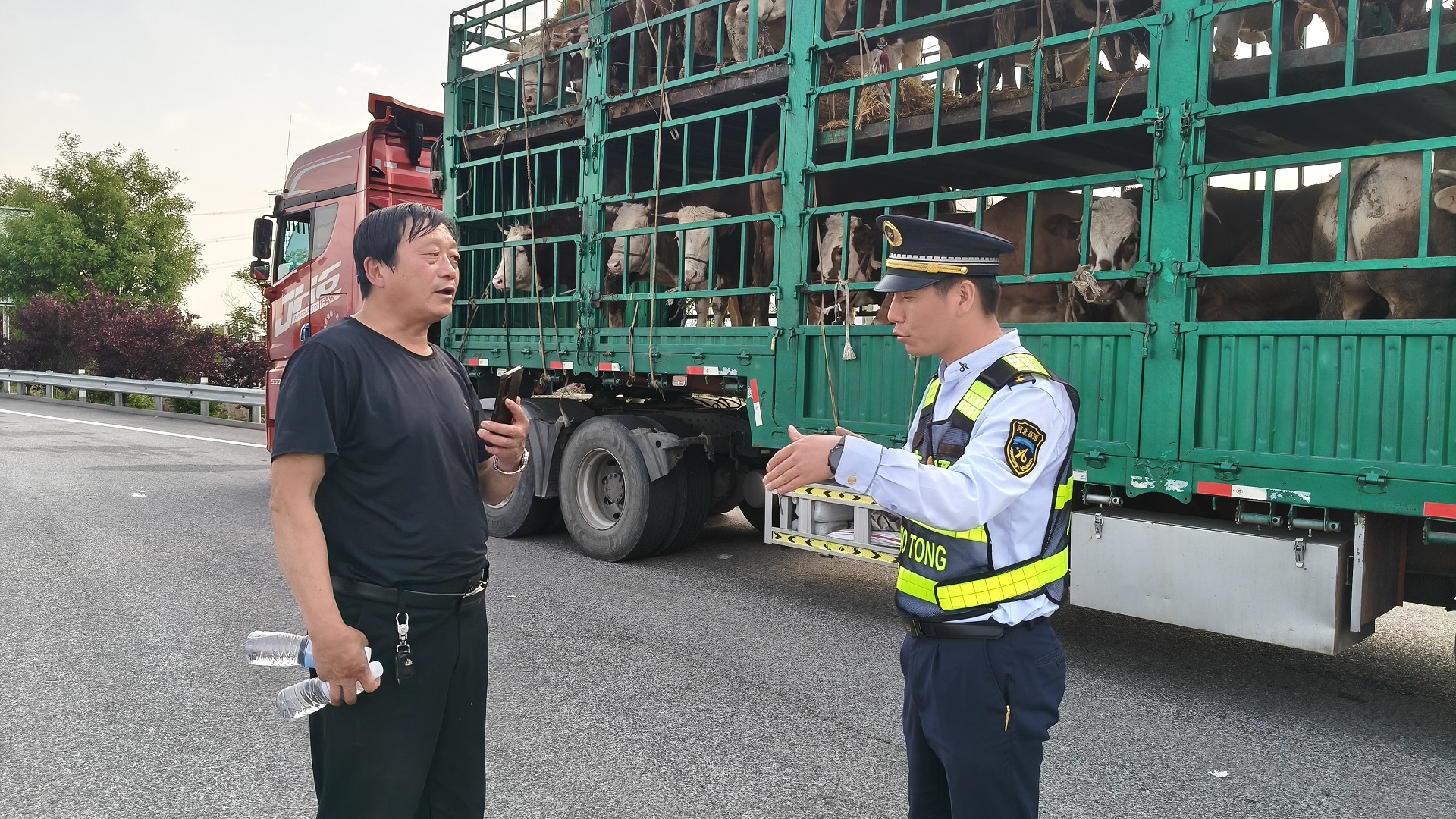 5月19日上午8时,一辆满载牛的六轴货车从玉田城西收费站X06道下高速后,司机满脸焦虑地向工作人员求助。