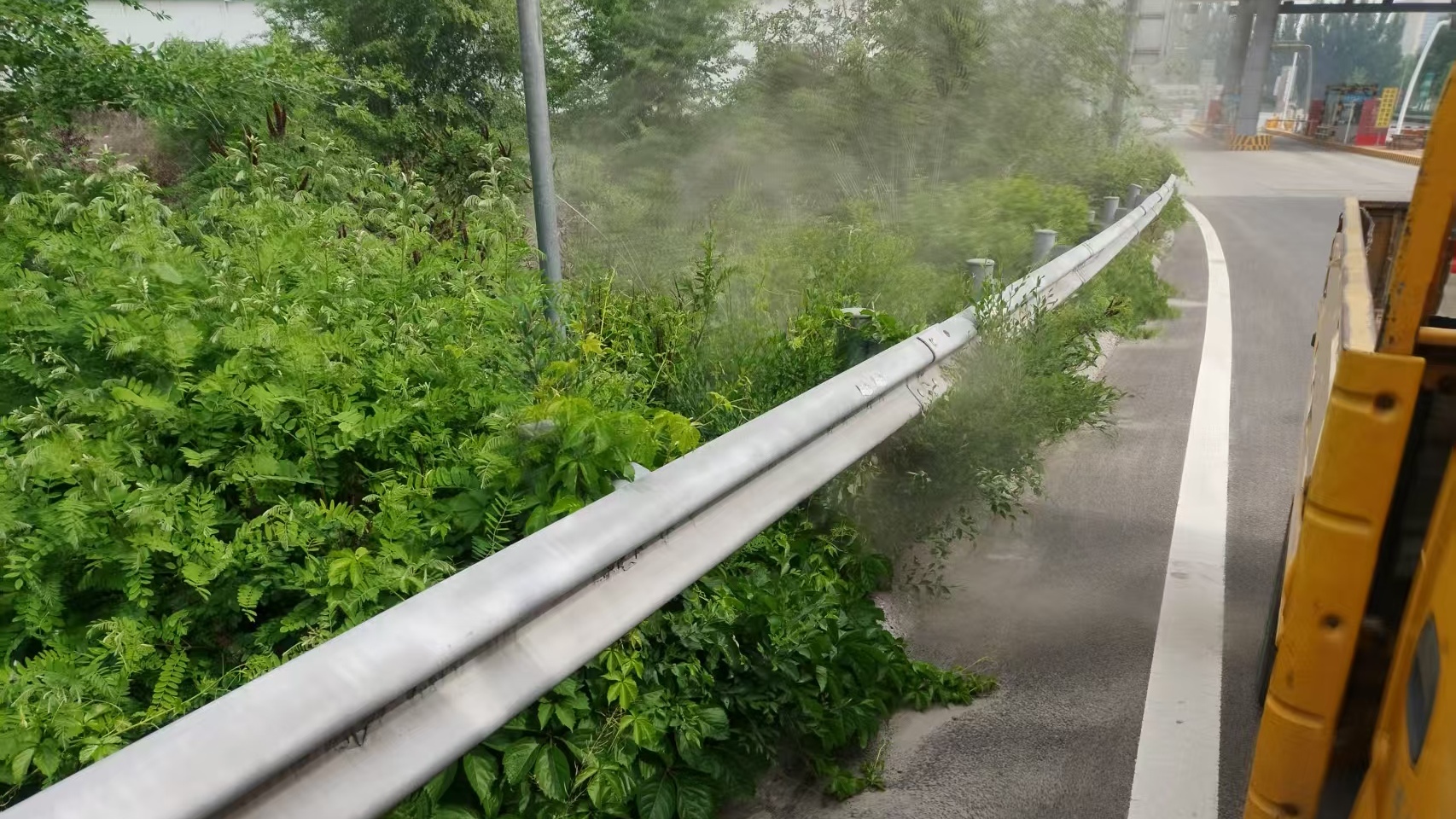 在为期两周的专项行动中,养护队采用“机械为主、人工为辅”的作业模式,累计投入清扫车作业240公里,重点对路面抛洒物、积尘进行立体化清理。针对中央分隔带杂草生长旺盛问题,组建3支专业除草小组,每组配备2名养护人员,按照“分类施药、精准防治”原则,科学配比草甘膦等4种除草剂,累计喷洒1.15吨药剂,既保障除草效果又兼顾生态环保要求。