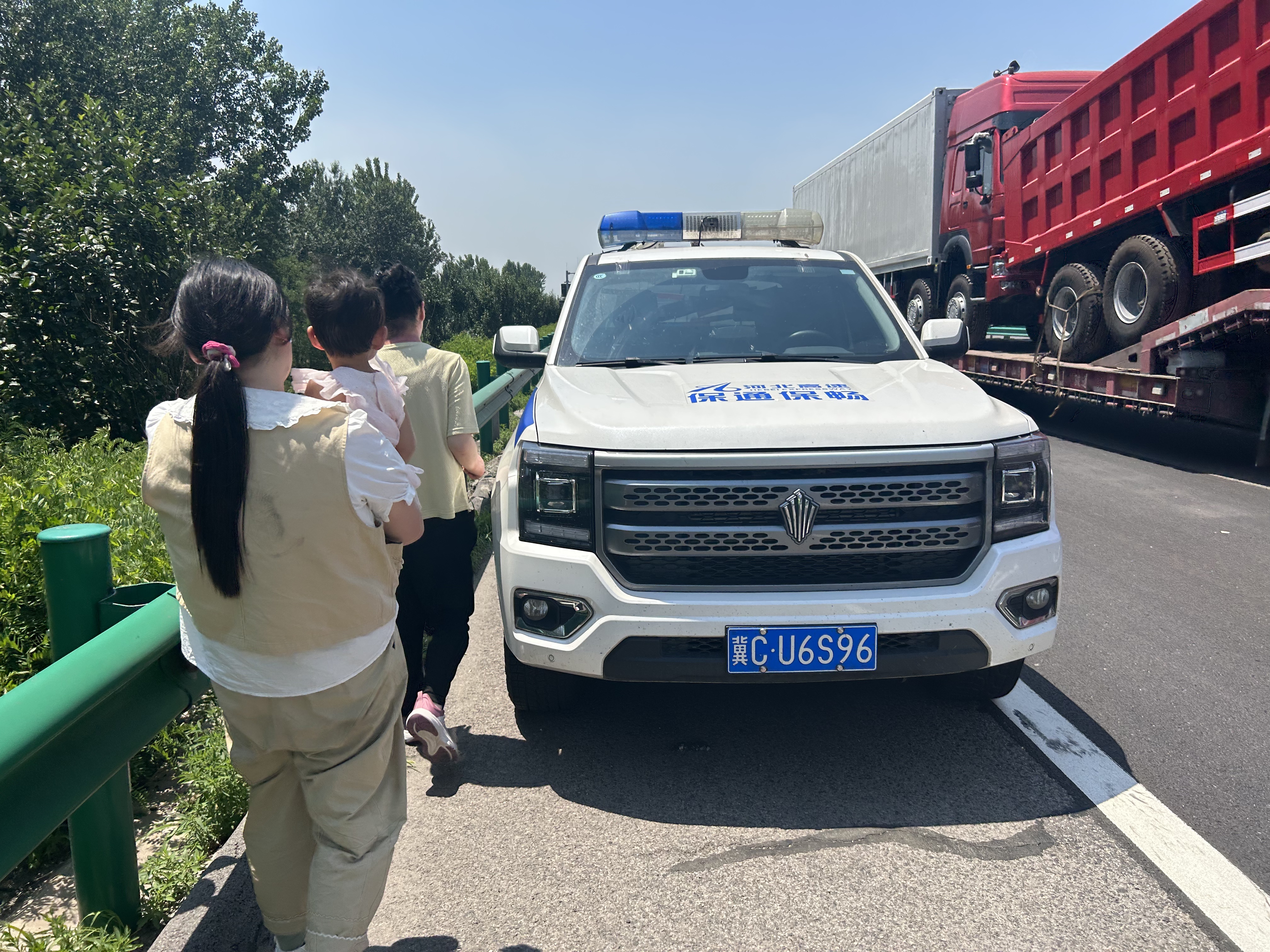2025年6月22日12时40分,骄阳似火,气温高达36摄氏度。迁安保通保畅应急大队二中队队员吴昊和张宁,正顶着烈日执行道路巡逻任务。当巡逻至沈阳方向K200处,他们敏锐的发现应急车道上停着一辆打着双闪的冀G牌照黑色轿车,情况异常。两人立即停车上前询问。经了解,该车辆突发故障熄火,无法继续行驶,被迫滞留。更令人揪心的是,随车人员特殊:除驾驶员夫妻外,还有一位年逾七旬的老人和一个仅一岁多的幼儿。正午烈日的暴晒下温度急剧攀升,如同蒸笼,老人和孩子已经出现不适,面临着严重的中暑风险,情况十分危急。队员张宁反应迅速,立即按照规范在故障车辆后方设置好警示标志和反光锥桶,进行安全预警,有效警示后方来车,保障现场安全。同时,他第一时间帮助焦急的司机联系道路救援。队员吴昊则迅速将关注重点放在老幼身上。考虑到高温对老人和婴儿的威胁更大,他果断而小心地将老人和抱孩子的母亲从护栏外侧引导出来,将他们安全护送至巡逻车内避暑,让孩子和老人脱离了高温的威胁。