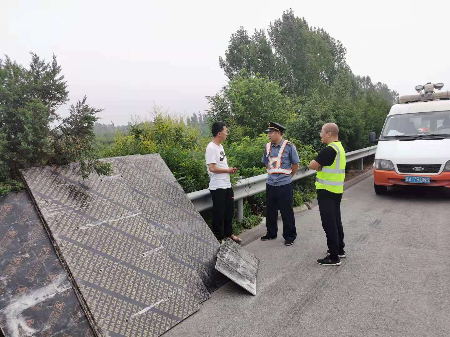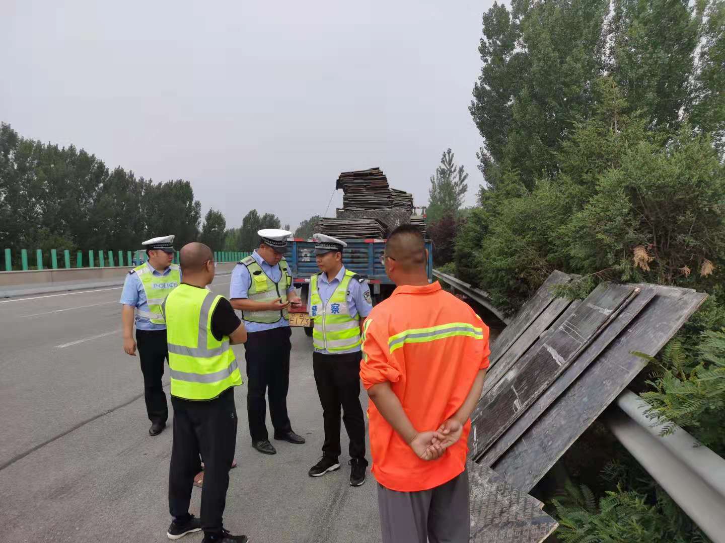 6月29日上午,燕郊工区巡查人员在管养路段巡查时,发现一辆运输废旧模板的货车装载很不规范,路面有大量遗撒,且司机正在将遗撒的废旧模板扔向护栏外的边坡。工区巡查人员立即将该车拦截在停车港湾,并及时通知高速路政和交警。高速路政交警按路警联动预案及时响应,于20分钟内赶到现场,将该违法车扣留。高速路政和交警执法人员向货车司机详细讲解了《公路法》相关条款,并对司机进行了批评教育。货车司机深刻理解不规范装载对高速公路行车安全的威胁,认识到自己抛洒货物行为的严重后果,在接受了交警路政的严厉处罚后保证在今后的运输工作中一定严格遵守法律法规,杜绝因只考虑一己私利二而造成他人行车危险的行为。
