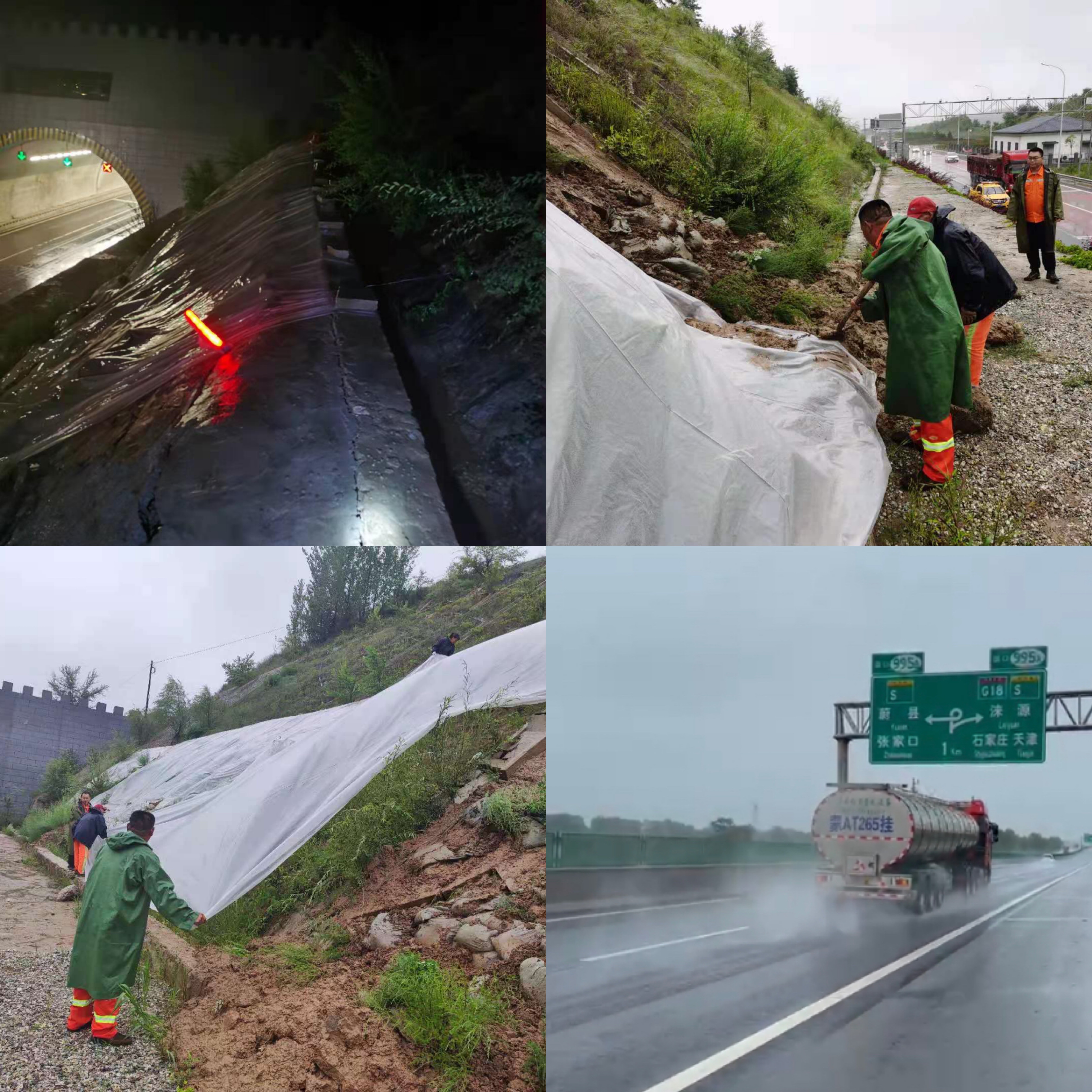 五是妥善处置险情。通过对易水毁重点段落的持续监测、分析研判,涞源养护工区提前做好了抢险队和防汛物资的储备工作,为险情处置争取了更大的主动权。7月12日上午巡查人员发现下行营尔岭隧道口上边坡发生险情,人字形防护出现小范围滑坡,现场未影响行车安全。接到通知后工区人员组织开展紧急抢修工作,迅速清理边坡淤泥、加固基础,并对滑坡位置和重点部位覆盖塑料布,防止病害进一步扩大影响行车安全,根据现场查看边坡整体稳定,安全状况整体可控。