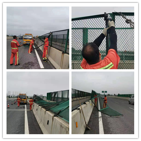 大雨过后,路面由于降雨出现了部分坑槽病害,为防止坑槽进一步发展影响行车安全,徐水养护工区立即组织人员对坑槽进行修补,保障行车安全。由于短时大风导致高速红线外树木倾倒在应急车道上,工区组织职工对倾倒树木进行修剪清理,保障应急车道通畅。大风还导致商庄互通主线桥防抛网连续倾倒,防抛网倾倒以后影响快车道行车安全,工区立即对倾倒防抛网进行拆除,保证快车道行车安全。