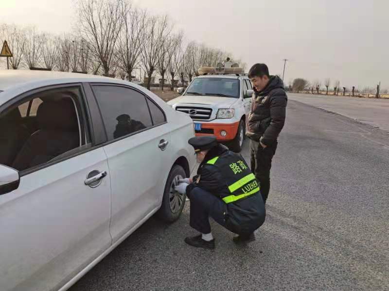 1月4日上午,乐亭大队执法人员魏国彬、王红江巡查至沿海高速天津方向k84+700处时,发现一辆小轿车停靠在应急车道内,一名中年男子站在车辆前侧打电话,看样子非常着急。经执法人员询问得知,该驾驶人准备回山东老家探望生病的母亲,车辆在行驶到此处时突然右后轮胎爆胎,导致车辆无法行驶,由于车上未携带修理工具,所以正在打电话寻求帮助。执法人员了解清楚情况后,一边安抚当事人的情绪让其不要着急,一边迅速从执法车辆上取下套筒扳手等工具,对爆破的轮胎进行更换。经过7分钟左右的时间,将轮胎更换完毕,车辆恢复到了正常的技术状态。