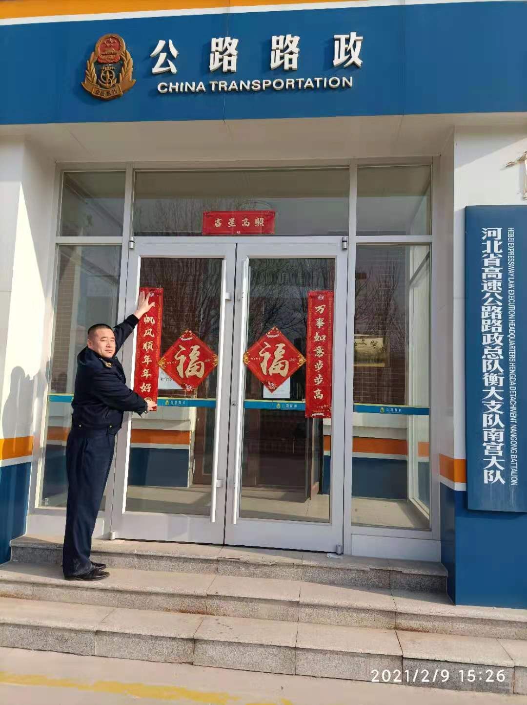 返乡回家,是割舍不了浓浓的乡愁;就地过年,是把乡愁暂且放在了心里头。海上生明月,天涯共此时。无论与亲人相隔多远,九游jiuyou(中国)的心始终在一起。今年除夕夜,九游jiuyou(中国)在哪里,哪里就是家,南宫大队在岗人员以大队为家,通过贴福字,挂灯笼,为南宫大队增添浓郁的年味儿。