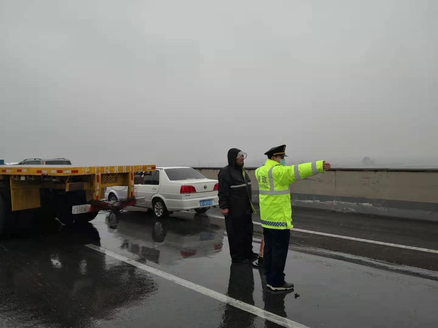 通过四方的协同合作、共同努力,16时10分,事故车辆拖离至应急车道,现场恢复通行。路政执法人员继续坚守现场,维护通行秩序,直至恢复畅通后,返回饶阳大队。此次事故中,饶阳大队反应迅速、行动果敢,不仅保障了道路的安全畅通,也维护了过往司乘的生命财产安全。饶阳大队提醒:雨雪天气行驶高速应适当降低车速,保障安全行驶距离,确保行车安全,莫要争分夺秒,以免对自身的生命财产造成不必要的损失。