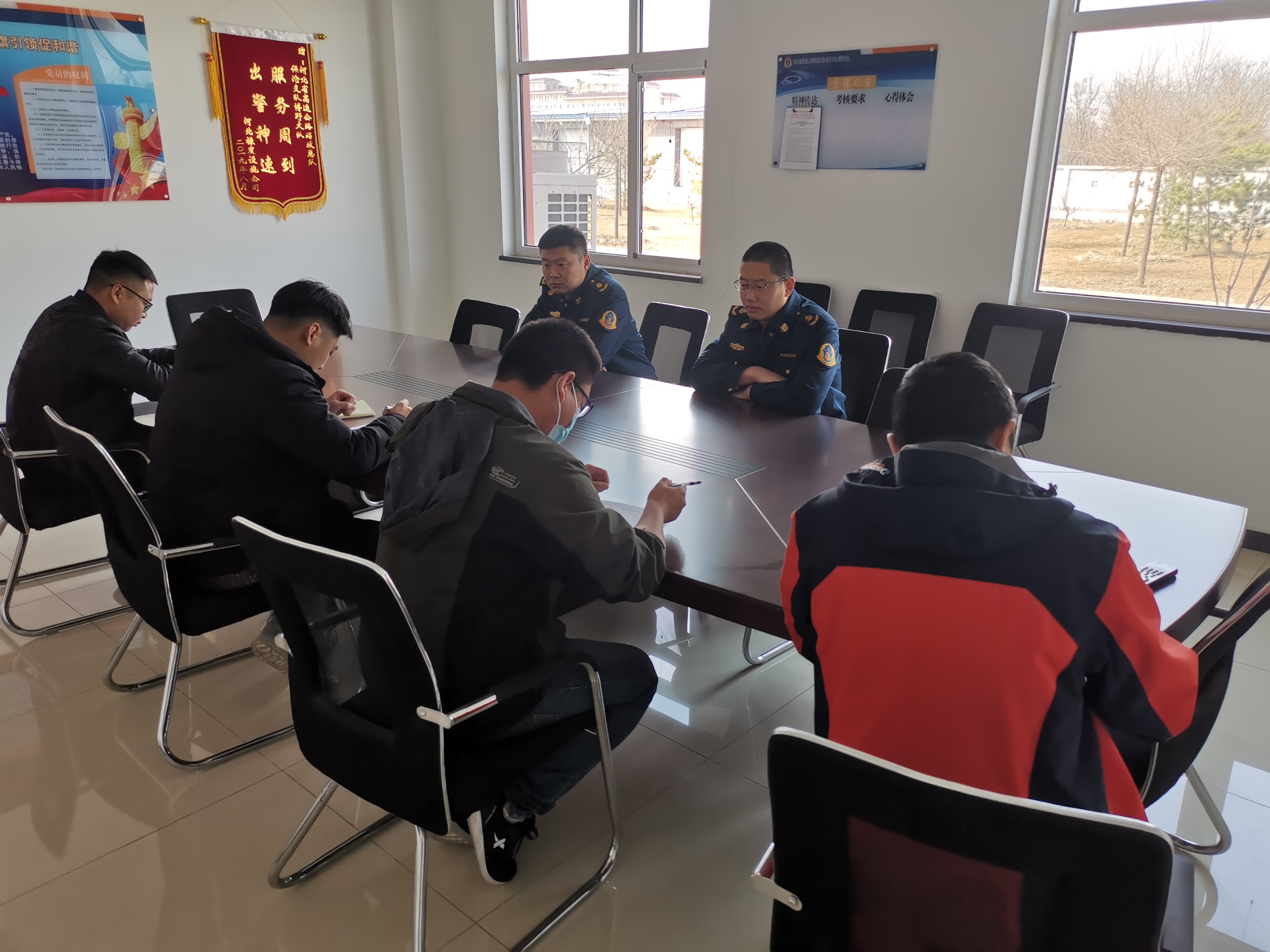 学习完毕后通过考试的形式来检验了学习效果,各标段安全负责人分数均在70以上,并承诺施工期间会把施工安全放在第一位,保证以人为本,杜绝安全事故的发生。