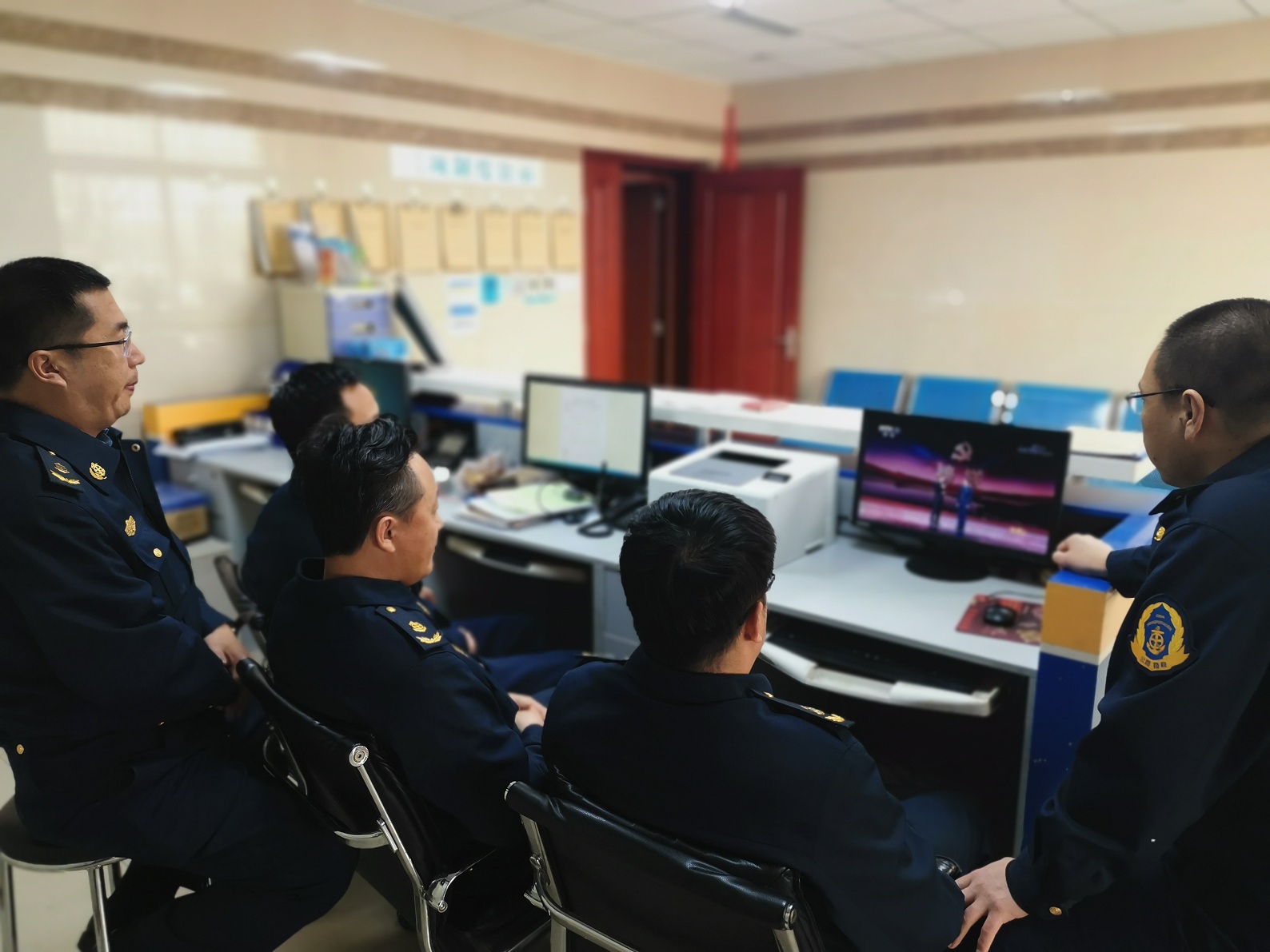 3月28日上午,沿海支队乐亭大队组织党员干部职工认真观看了《榜样5》专题节目。