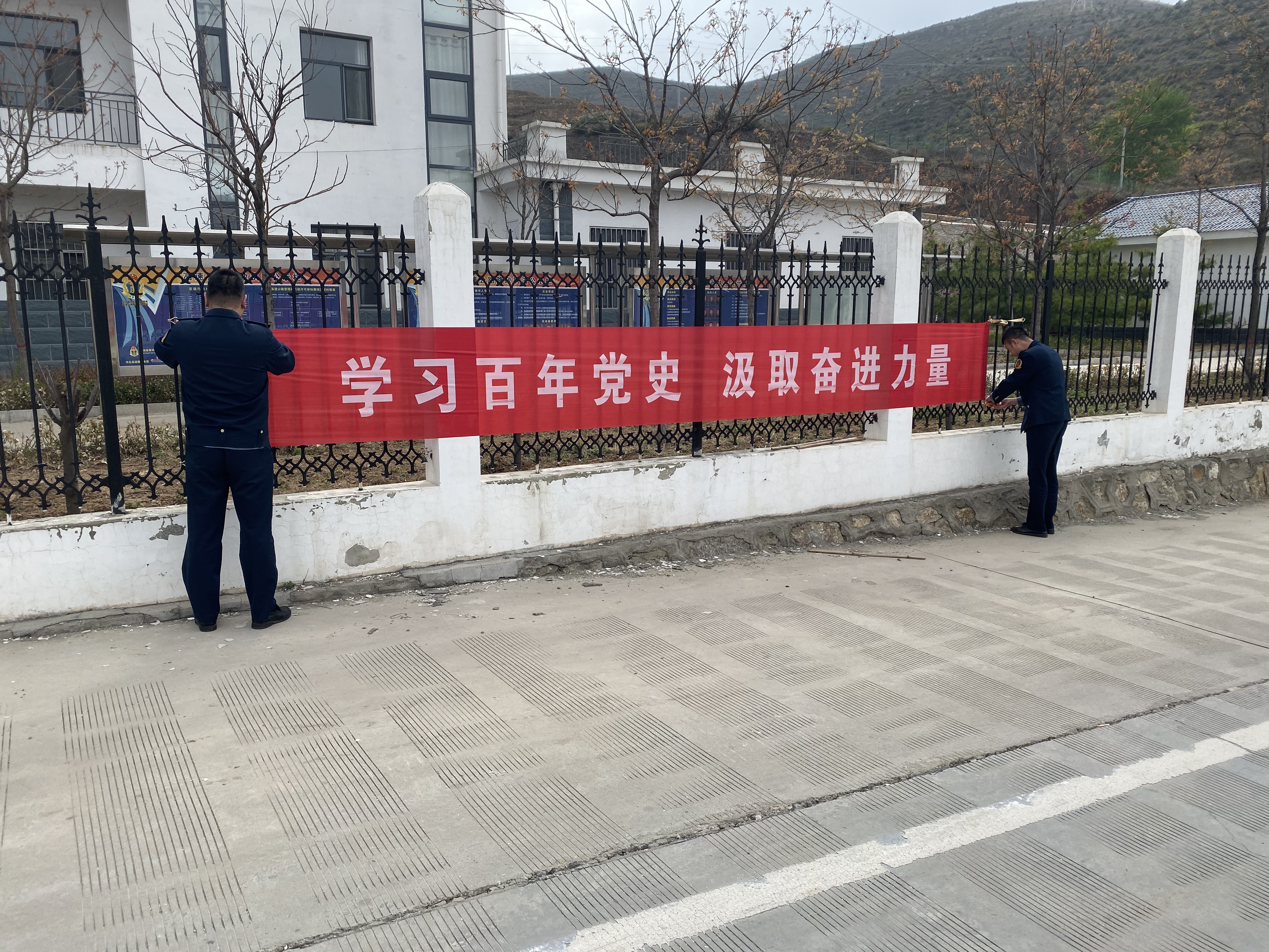 三是浓厚氛围强营造。大队在驻地院区、辖段服务区等显著位置张贴悬挂宣传标语,大力营造党史学习教育的浓厚氛围。