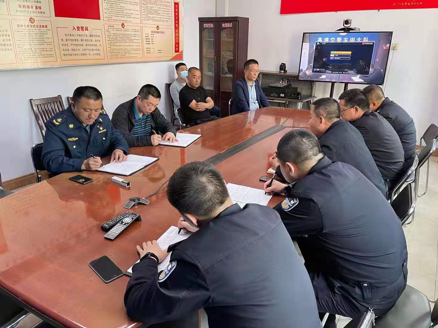 4月20日下午3时,京秦支队唐山大队副大队长王晓军在高速交警玉田大队驻地,参加了由高速交警唐山支队、高速交警玉田大队、高速路政唐山大队、高速唐山养护工区以及辖区相关车辆救援单位等多家单位共同召开的“五一”假期和旅游高峰期保畅协调会。
