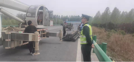 23日,大队外业二中队在日常巡查中发现,邢家湾收费站外广场有一处未经许可设置广告牌施工现场。中队长张志刚对当事人询问,并对他进行普法宣传、沟通协商,告诫其在公路范围内设置非公路标志属于违法行为,要求当事人立即停止施工,将施工材料搬离高速公路。在路政人员的反复劝导下,当事人答应停止施工并联系车辆将立柱搬离现场,有效地制止了一起违章建广告牌行为。
