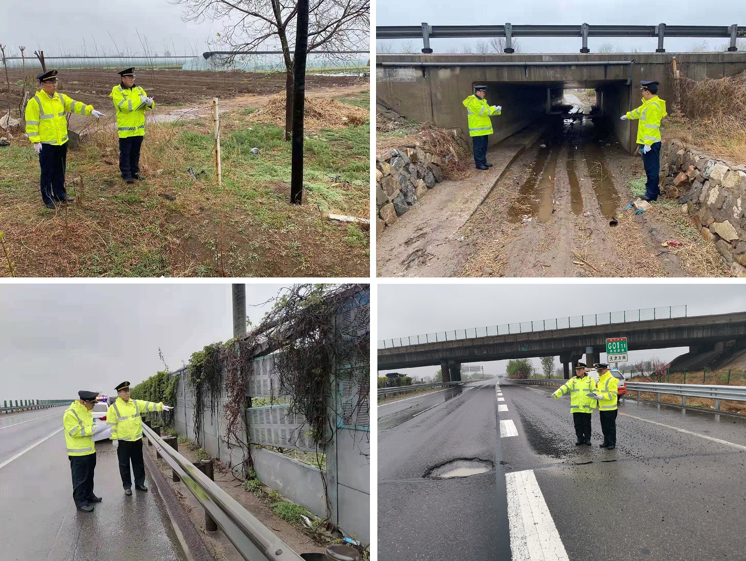 此次排查,大队安排一名人员值班外,其他人员全部上路,在陈再华副大队长的带领下,分成了三个小组,按照每个小组20公里的区域进行了排查。排查以因降雨出现的坑槽、涵洞积水、排水沟损坏和因大风出现的隔音板和防眩板掉落、树木和警示标志倾斜、隔离栅和立柱倾倒等两个方面为重点。通过边排查、边拍照、边记录、边汇总的方式,将发现存在的12个坑槽、4处堵塞的排水沟、7块掉落的防眩板、4处掉落的隔音板和2处涵洞内积水等共计29处安全隐患问题,第一时间通知了养护工区,并督促其尽快的采取措施,消除安全隐患。