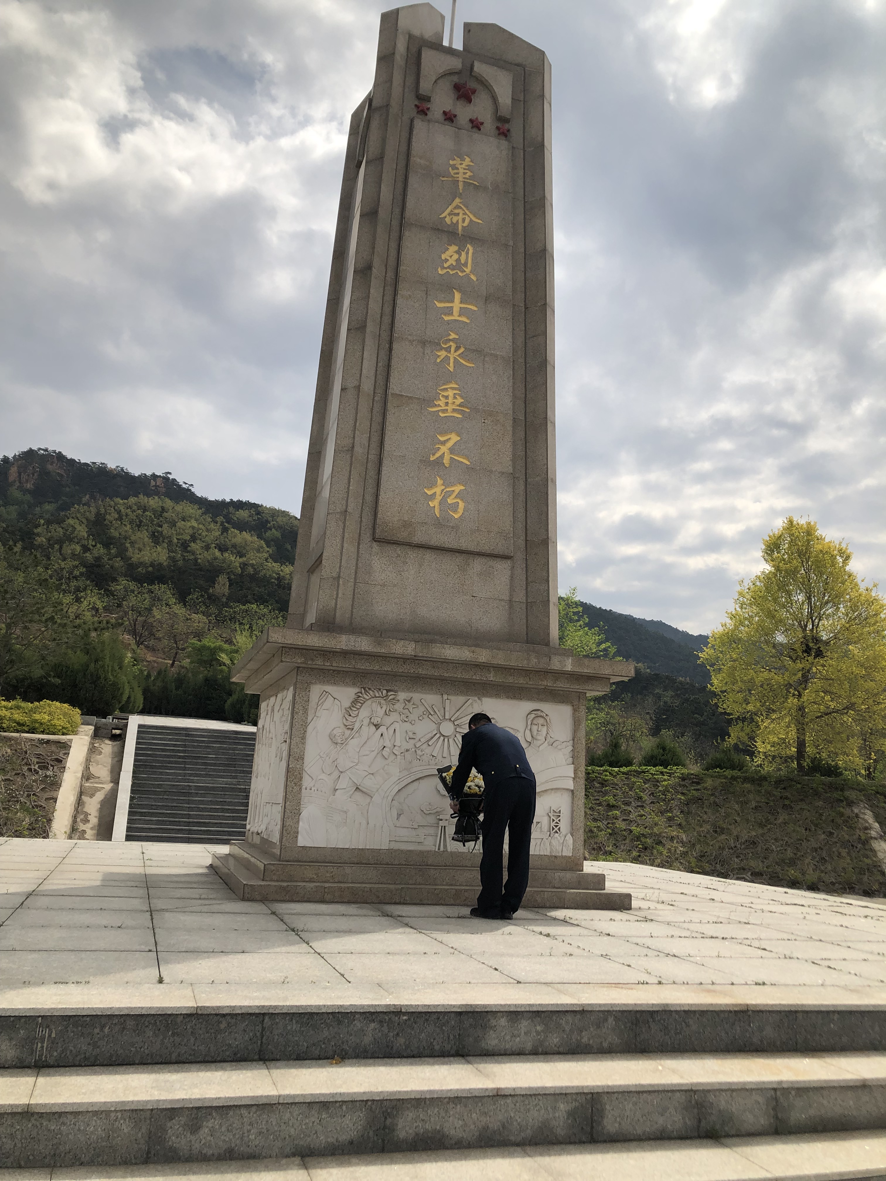 走出冀东抗战纪念馆,大家缓步走上台阶来到革命烈士纪念碑前,向烈士默哀、鞠躬、敬献鲜花,并瞻仰了革命烈士纪念碑。