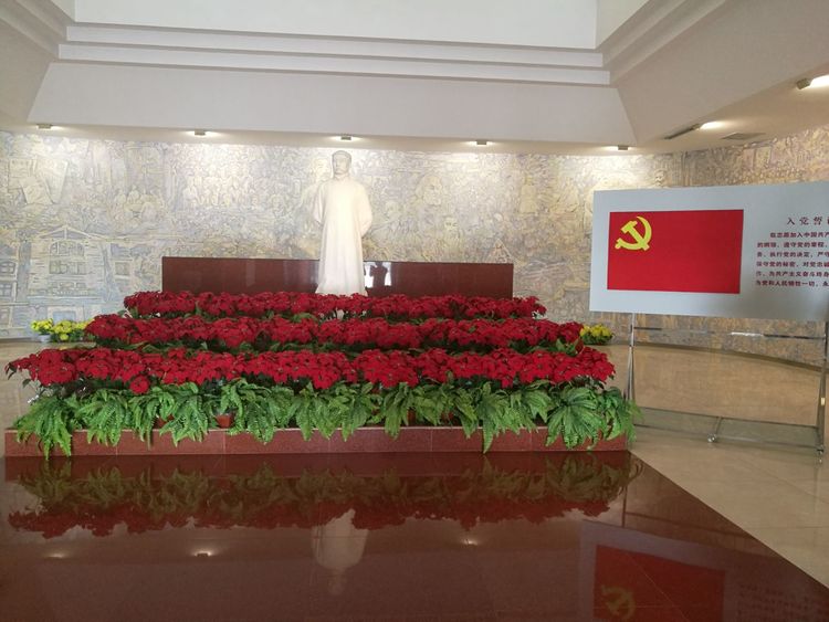 瞻仰大厅内,安放着大钊同志的汉白玉雕像,神态沉静、深思。遵化大队党支部全体党员在这里,重温入党誓词:“我志愿加入中国共产党,拥护党的纲领,遵守党的章程,履行党员义务,执行党的决定,严守党的纪律,保守党的秘密,对党忠诚,积极工作,为共产主义奋斗终身,随时为党和人民牺牲一切,永不叛党。”
