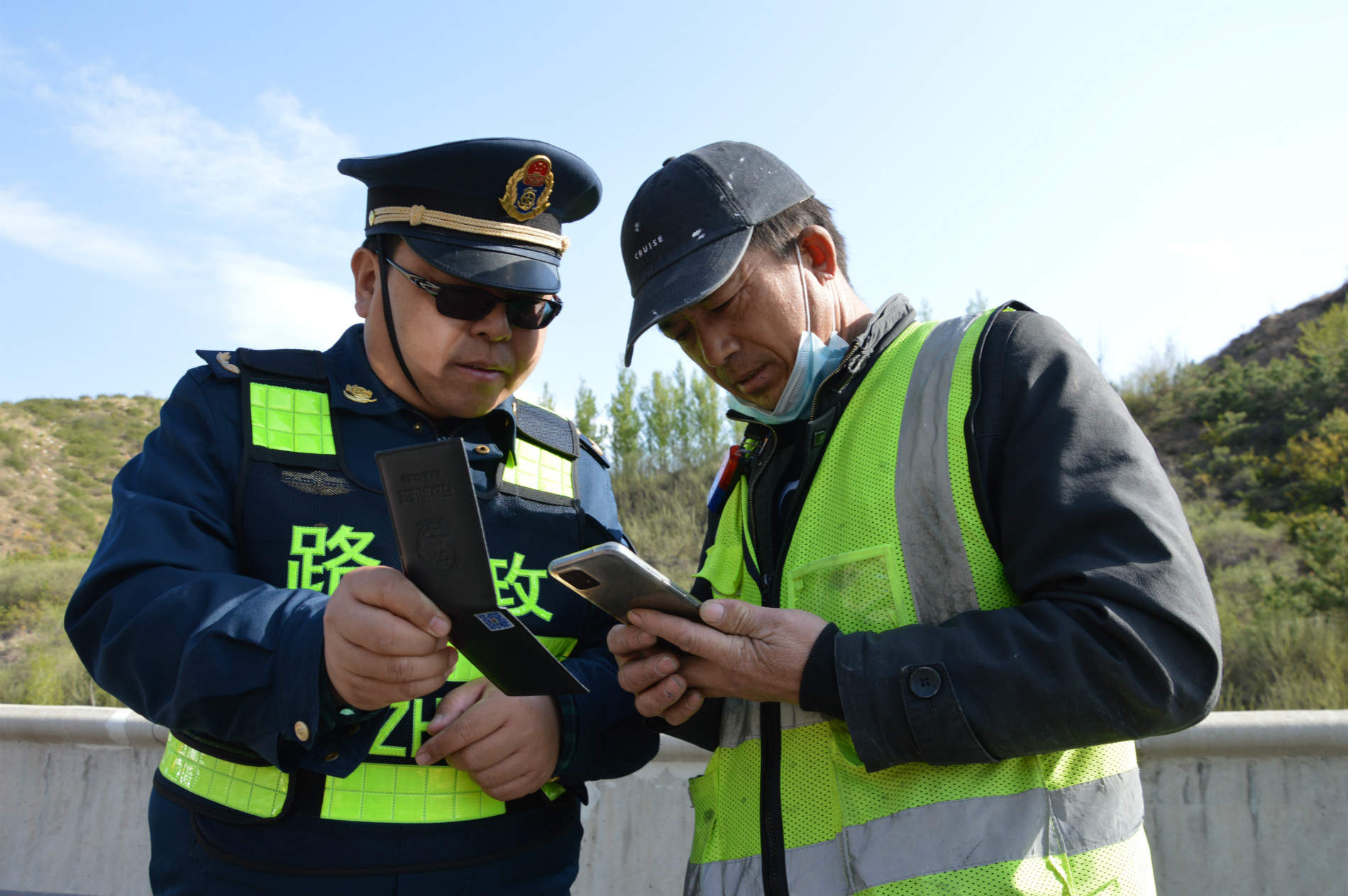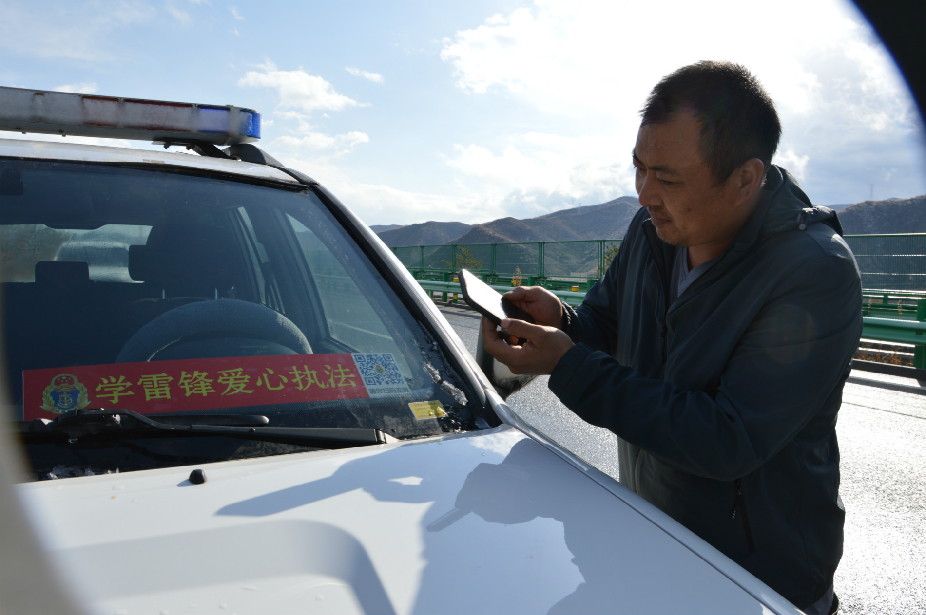 图六:受助司乘正在扫描二维码对执法车辆进行信用执法监督