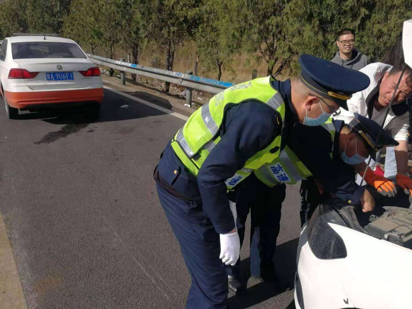 假期期间,执法人员规范执法行为,强化文明服务,积极为有困难的驾乘人员全力提供帮助,做到有险必除、有难必帮,树立良好路政形象。5月1日下午15时,滦平大队刘建国、宋进、王志强主动为司乘排除车辆故障,帮助其重新踏上回家之路。与此同时,在服务区设立便民服务点两个,展开解答问路、行车安全知识、车辆故障排除,区域内旅游景点介绍等相关事项,将河北高速公路路政人的良好形象展示给人民,树立打造平安出行千万家,便民服务找路政品牌。