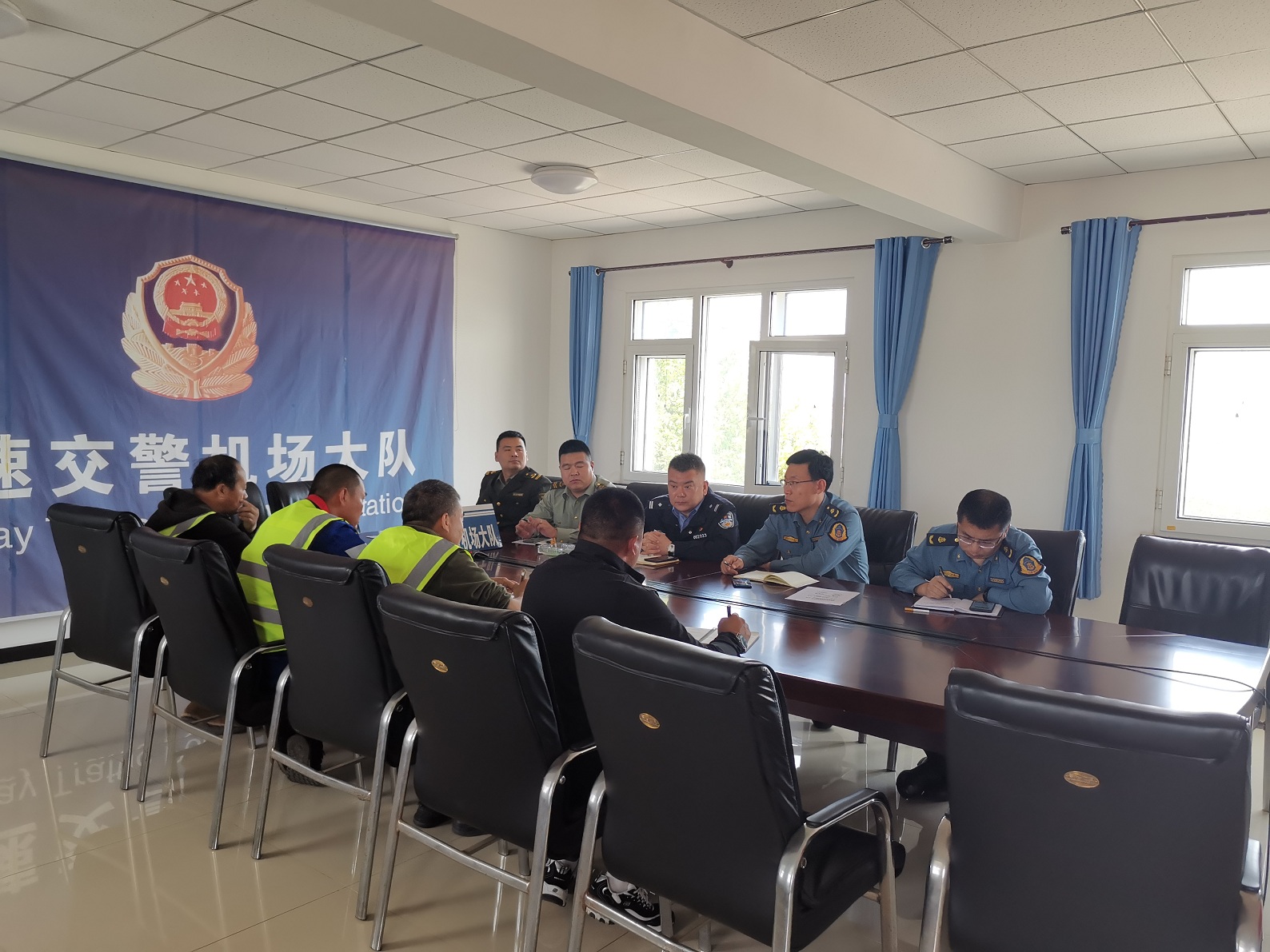 5月10日上午,沿海支队乐亭大队前往高速交警机场大队与高速交警、高速稽查共同约谈辖区一标段、二标段两家施工单位负责人,对近期检查发现的施工安全问题进行警示教育。
