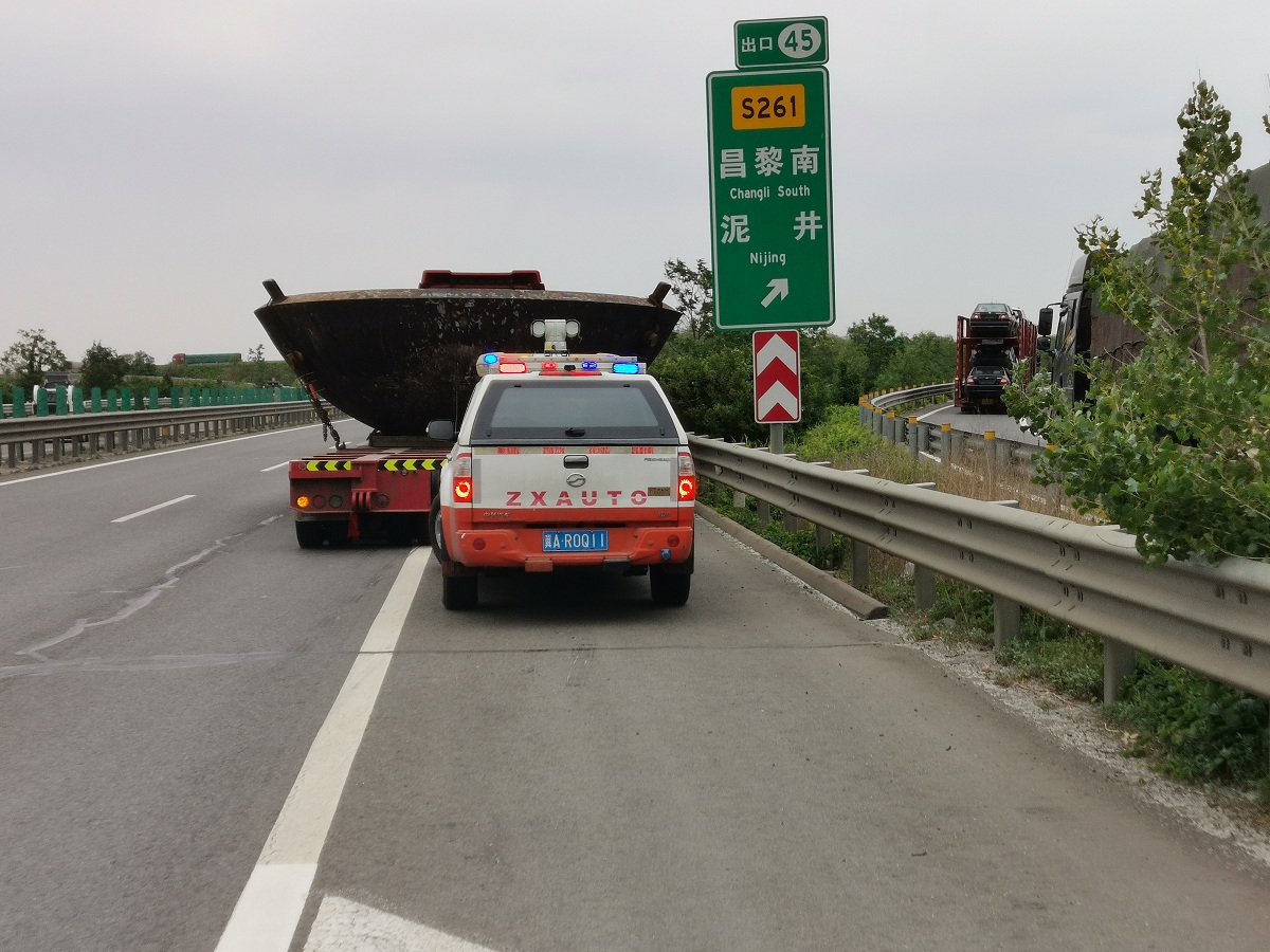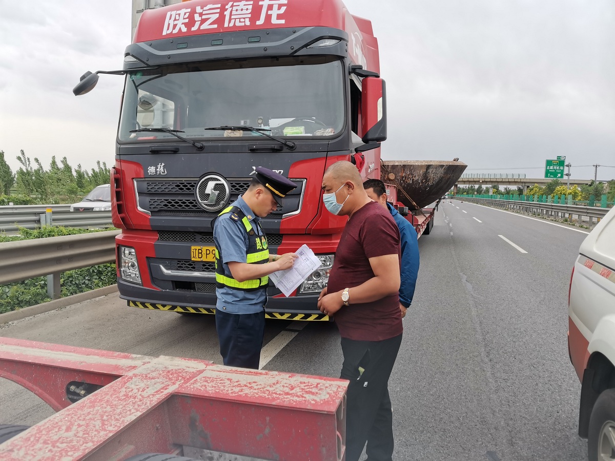 5月24日下午,乐亭大队执法人员在沿海高速秦皇岛方向k97+500处护送超限车辆。