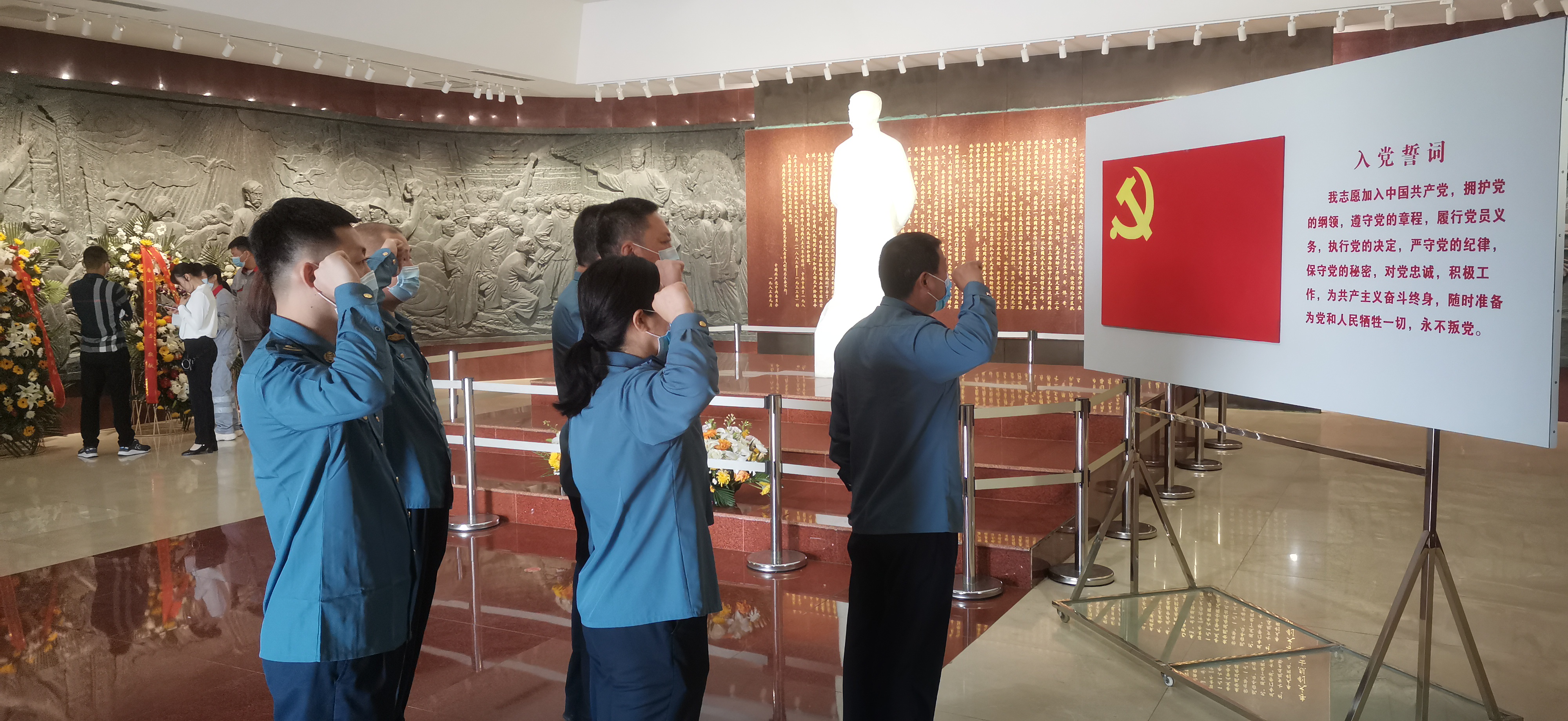 李大钊纪念馆庄严肃穆,由江泽民同志题写的"李大钊纪念馆"镌刻于大门门楣。登38级台阶,可到达瞻仰大厅。这38级台阶象征了大钊同志走过的38年人生岁月。瞻仰前,党支部书记马忠同志带领全体党员重温了入党誓词。