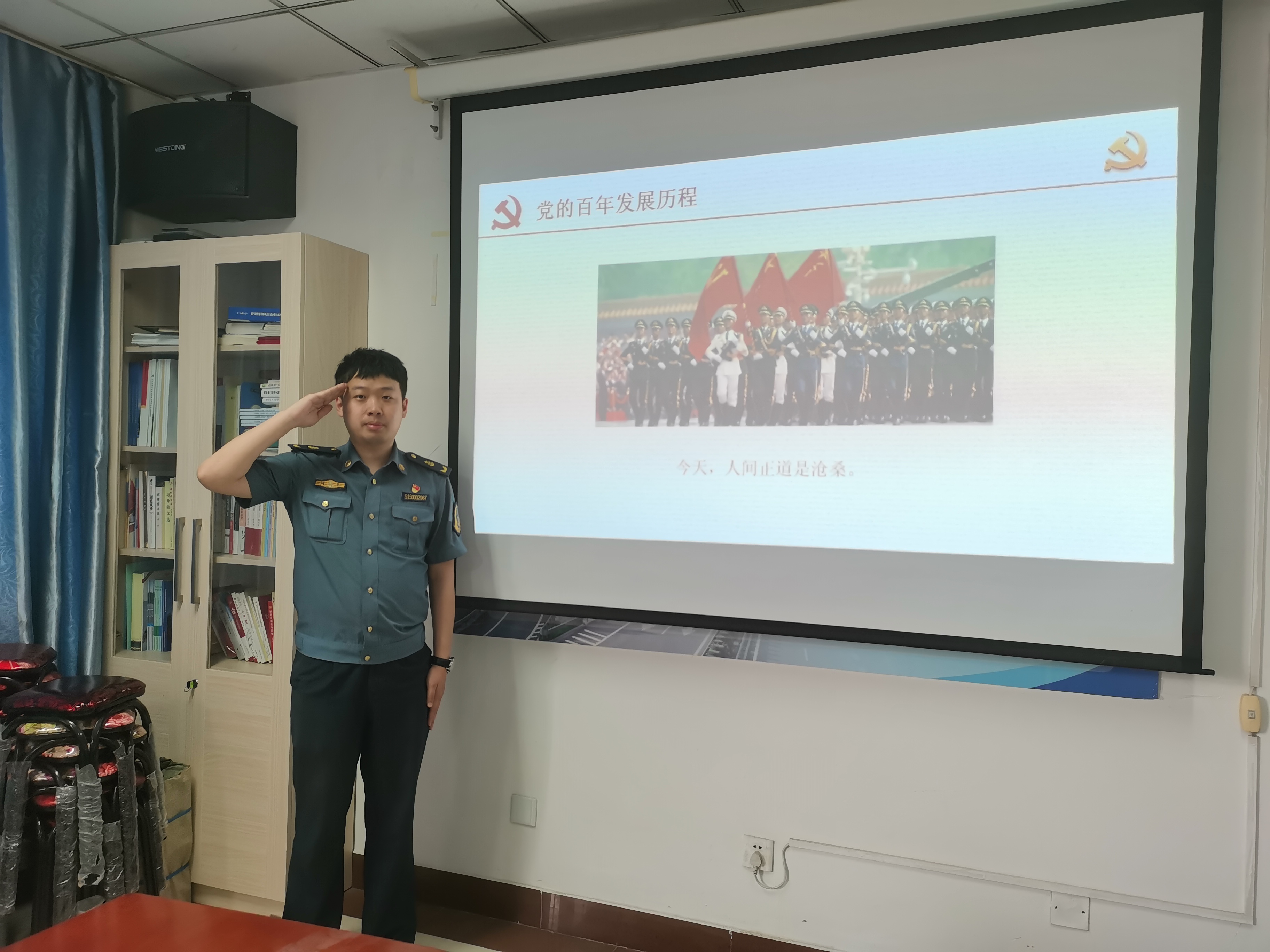 为深入贯彻党史学习教育安排部署,更好地推动党史学习教育,5月26日下午,沿海支队乐亭大队党员郑一强同志到乐亭东收费站进行党史学习教育宣讲,他以“光辉的历史”为主题做了宣讲。