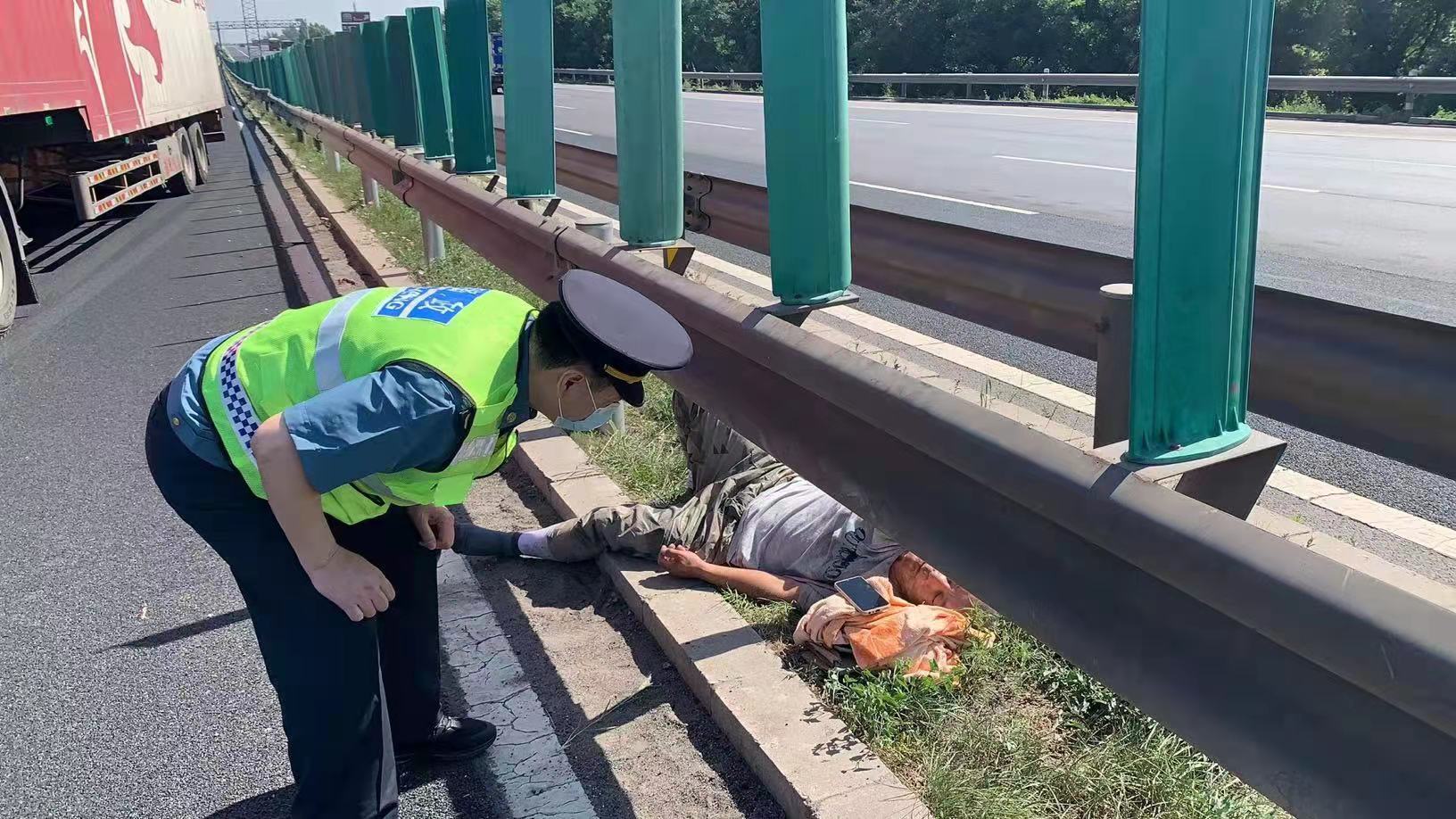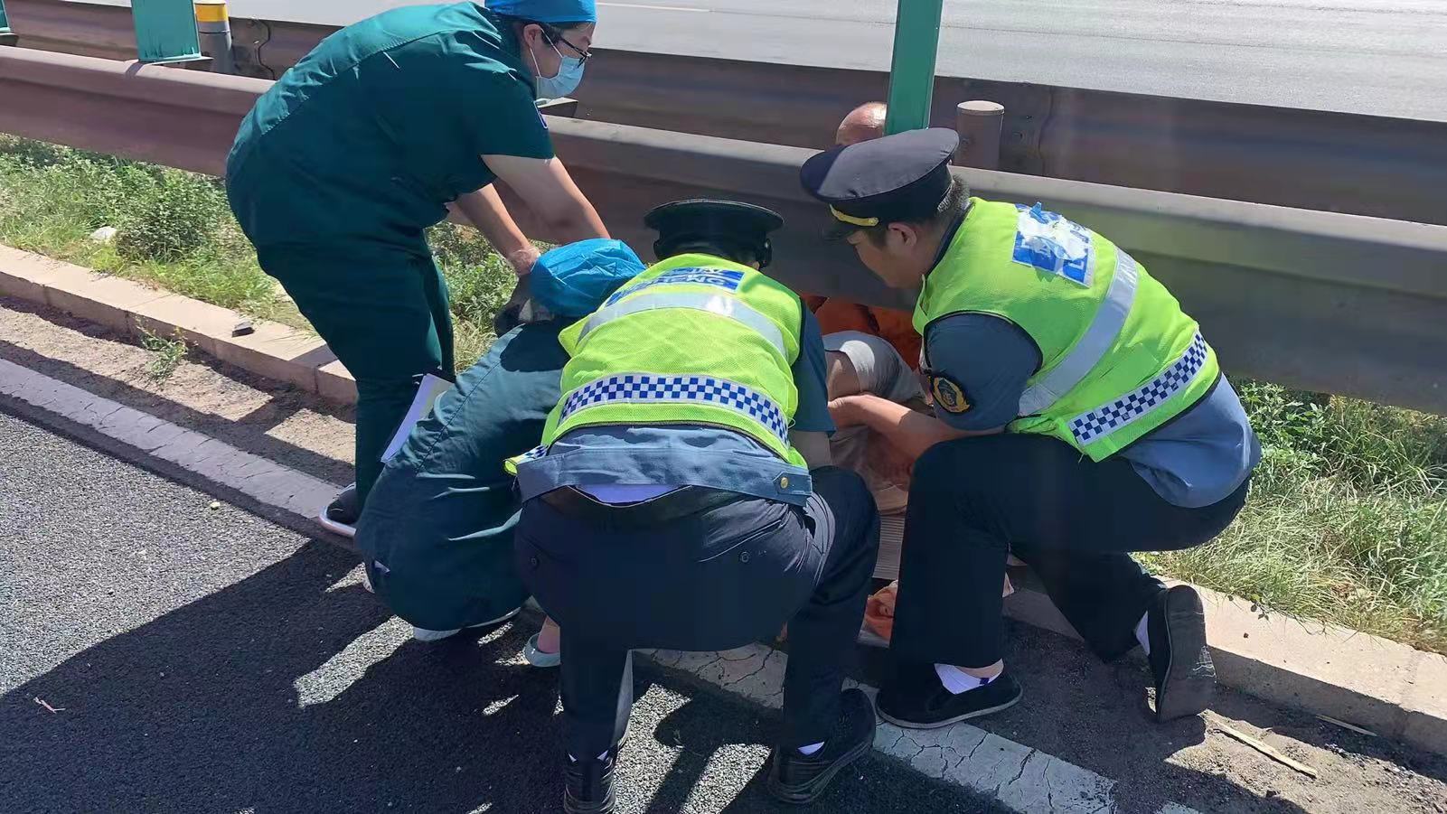 6月5日8时30分,石太支队外业一中队耿保和、李星、钱新桥例行道路巡查,行至鹿泉收费站500米处,见到一辆大货车停在超车道,车辆开着双闪,但未摆放警示标志,中央分隔带中躺着个人,意识到情况严重,队员们赶紧下车,摆放好警示标志,中队长耿保和上前询问情况,发现该司机无明显外伤,意识混乱,有轻微昏迷状态,耿保和紧急拨打了120急救电话,其他队员也迅速通知了高速交警和救援公司,在等待救护车赶来的过程中,为防止伤员彻底失去意识,队员们不停跟伤员交谈。