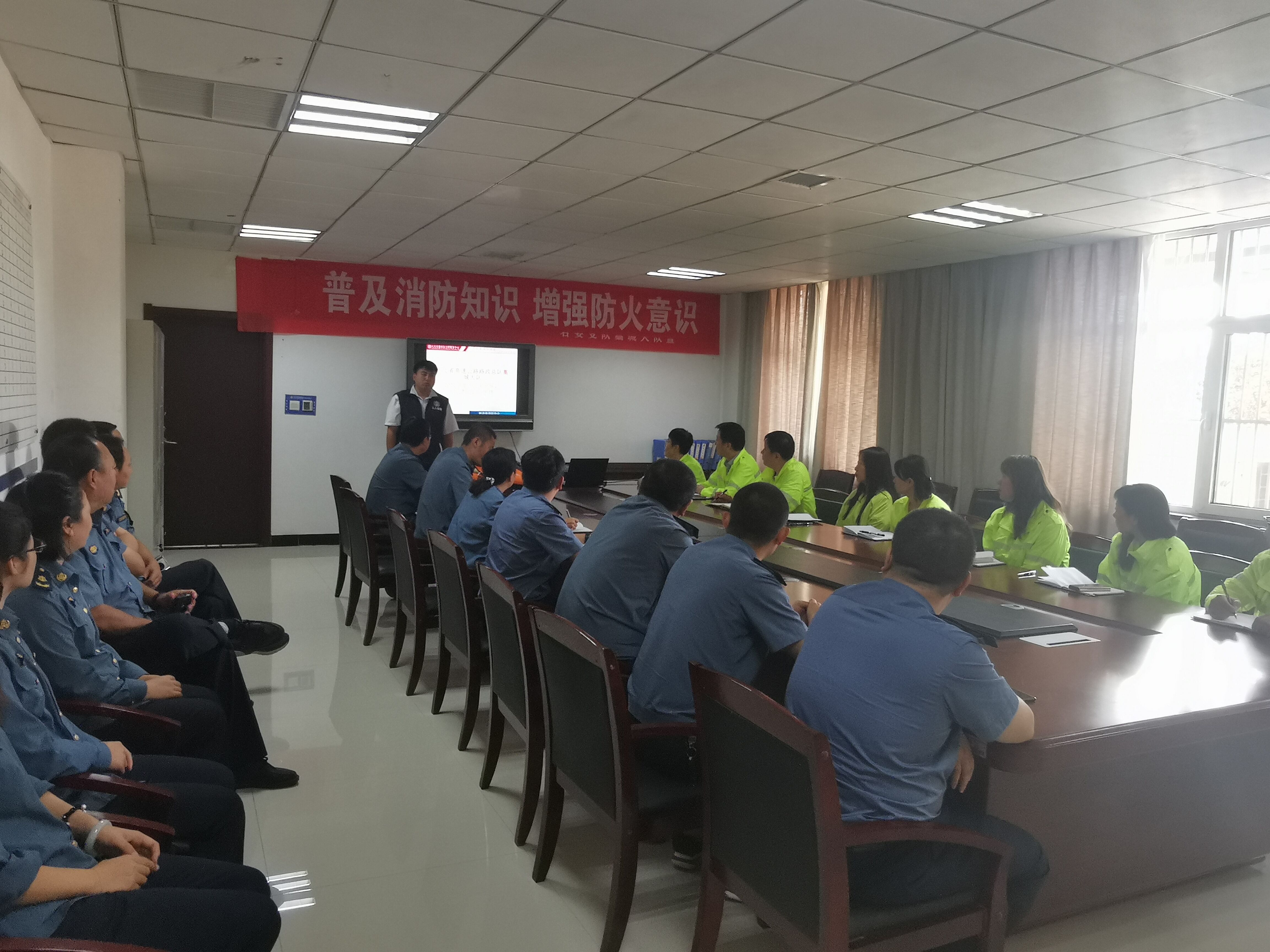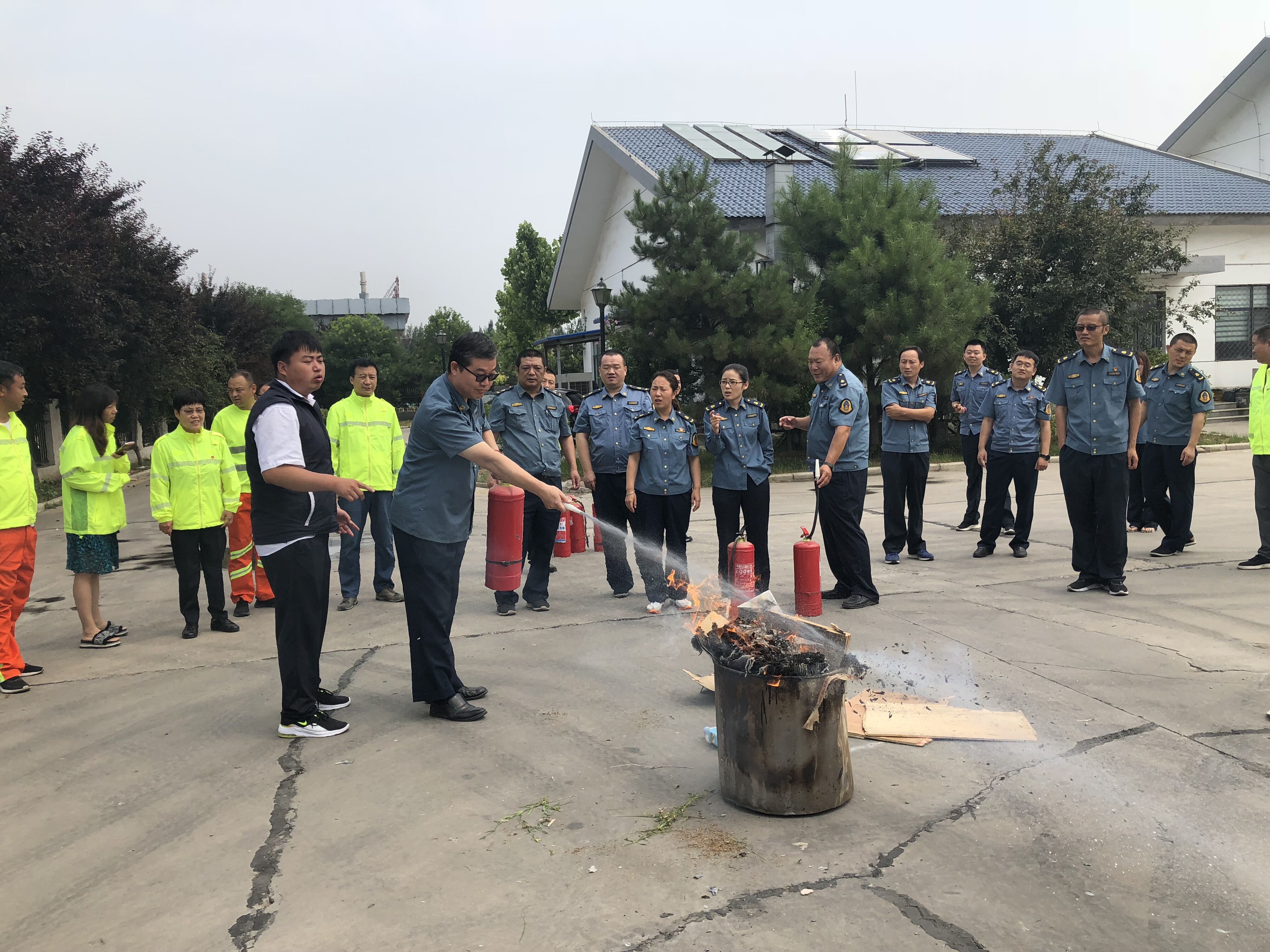 2021年6月24日上午,藁城大队联合石家庄东工区聘请专业消防培训讲师在会议室讲解消防知识,会后在院内组织了消防演练。