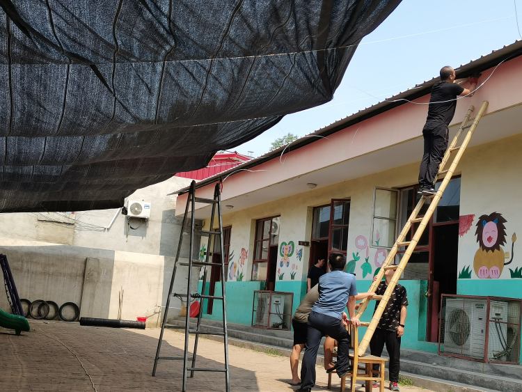 6月23日,省高速路政总队驻羊角乡上苇村工作队为村幼儿园购置的遮阳网安装完毕,孩子们能在阴凉下愉快的玩耍了,老师、幼儿和家长对工作队表达了深深的谢意。