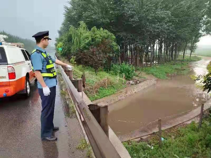 6月25、26日,唐秦地区连续两天普降中到大雨。为了及时发现并消除安全隐患,防止发生交通事故,确保道路安全畅通。6月27日,乐亭大队组织执法人员分成了两个小组,在值班大队长郭栋的带领下,对公路设施进行了一次全面排查。