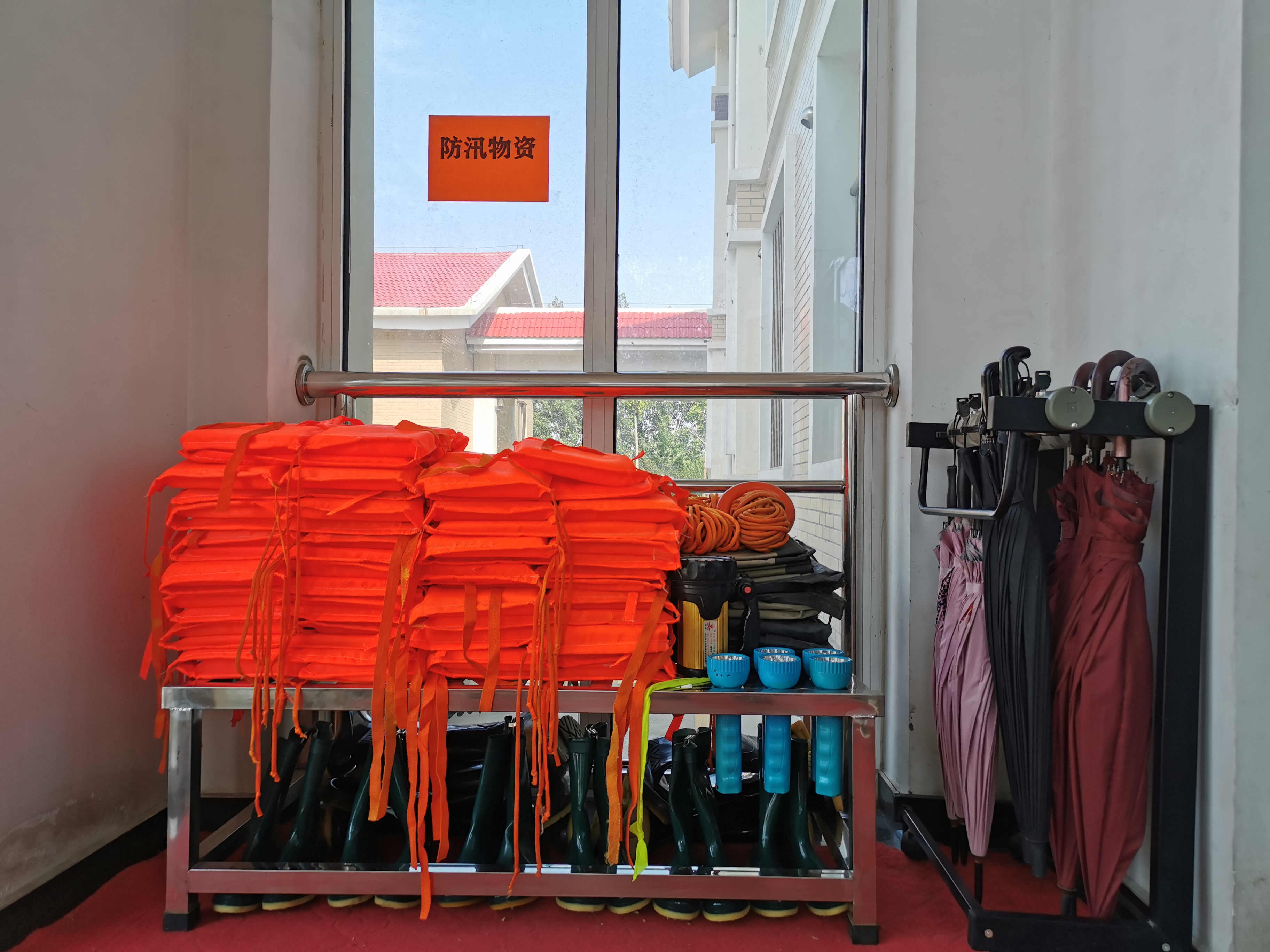 三是加强物资储备。依次清点救生衣、安全绳、手电筒、雨衣、雨鞋等防汛物资,遇有坏损工具、雨具及时检修更换,确保物资数量充足、质量完好。