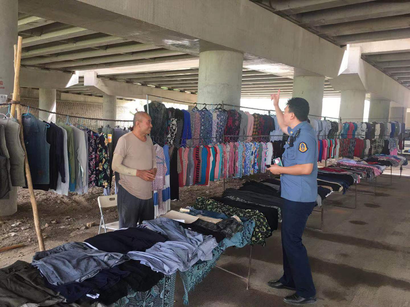 7月20日上午10时52分,保津支队固安西大队外业二中队在日常巡查中,发现京雄高速K31+552处分离立交桥下存在违法摆摊设点出售衣服现象,路政人员及时对经营摊贩进行说服教育。