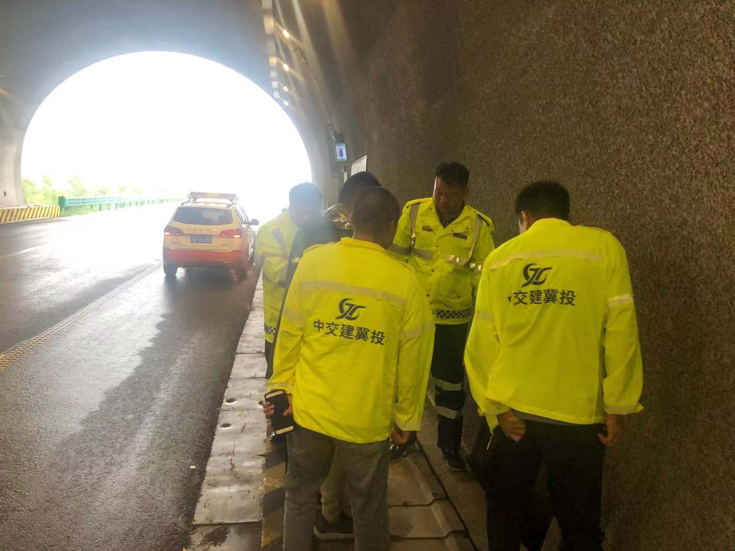 2021年7月22日,保沧支队川里大队值班人员联合涞曲养护工区雨中对辖区重点路段进行安全隐患排查。