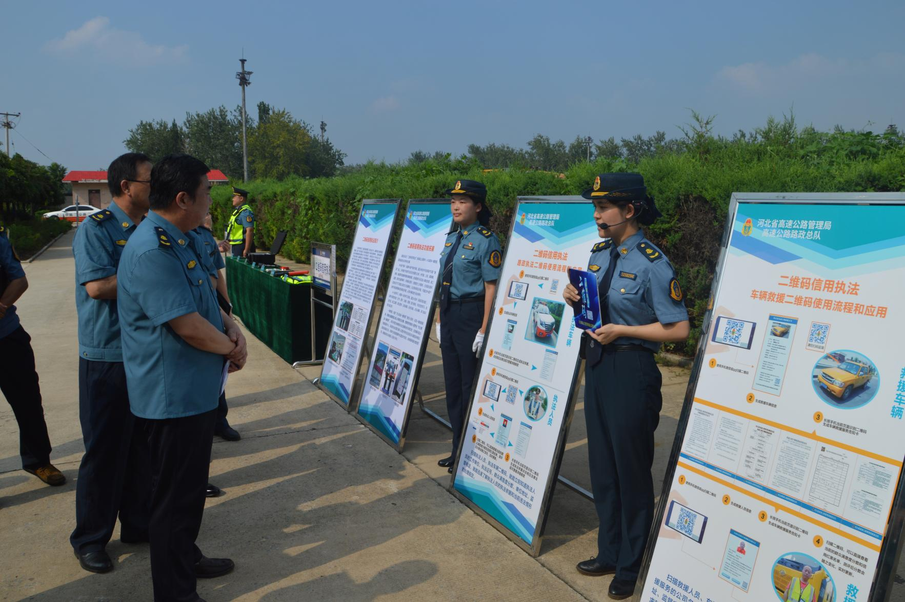 此次正规化建设观摩会分为三个部分,即交通指挥手势演示、信息装备展示、基层队伍的“四基四化”建设展示。交通指挥手势演示展现了军事化训练成果,培养了执法人员服从意识,做到有令即行、有禁即止,进而促进规范执法,文明服务;“二维码信用执法”使执法行为公开化,从而规范了路政管理,破解了高速公路执法、救援监管难题,是推进“信用交通”体系机制建设的一项科技创新;无人机装备助力路政巡查、桥梁检查、路损勘验和普法宣传,大大提高了救援时效;“四基四化”建设突出了标准化定制,展现了良好的军事化风貌。