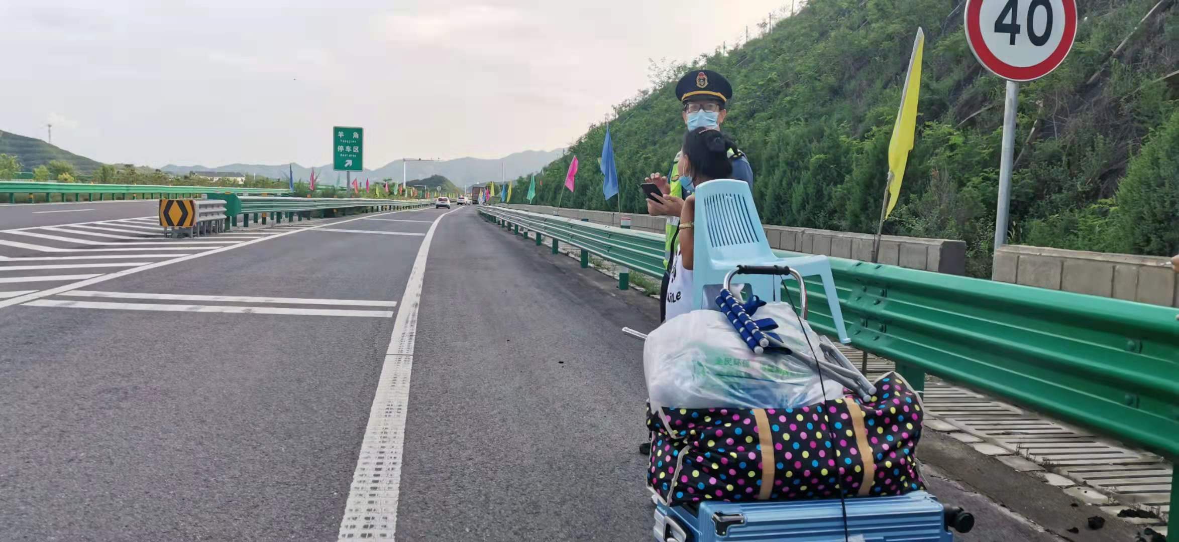 川里大队执法人员问起她的相关信息时,她只说自己在路上拦车要坐客车到山东菏泽市。经了解得知她没有手机,也记不住自己身份证号及家人联系方式,就连自己的家庭住址也表达不清楚,只能将她劝到前方50米的羊角服务区内等候客车。执法人员对他们讲解了行人上高速的危险,并进行了批评教育,要求她不得再上高速行走。