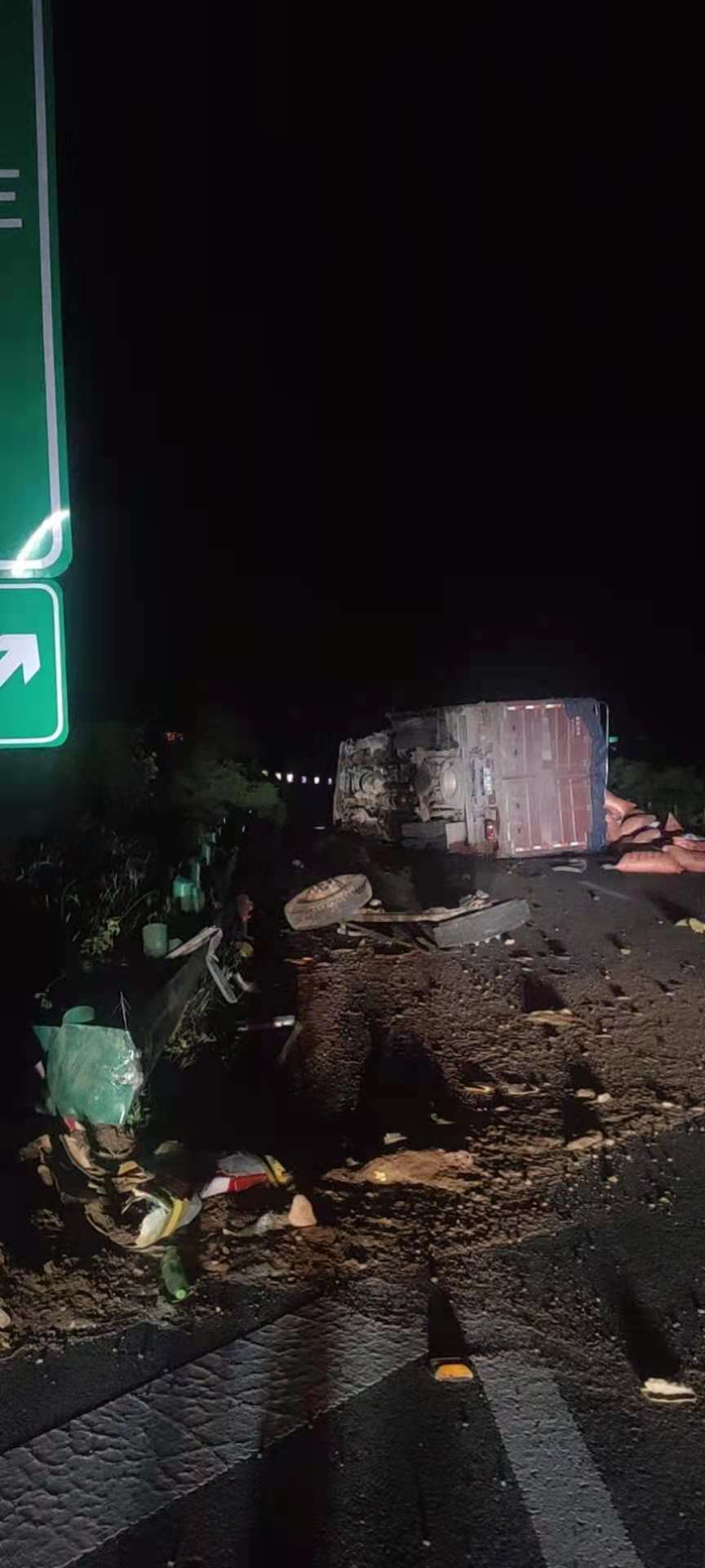 8月15日凌晨3时,石安支队邢衡大队外业三中队接到报警电话称,一辆货车侧翻在邢衡高速公路衡水转京港澳高速匝道内,无人员受伤。