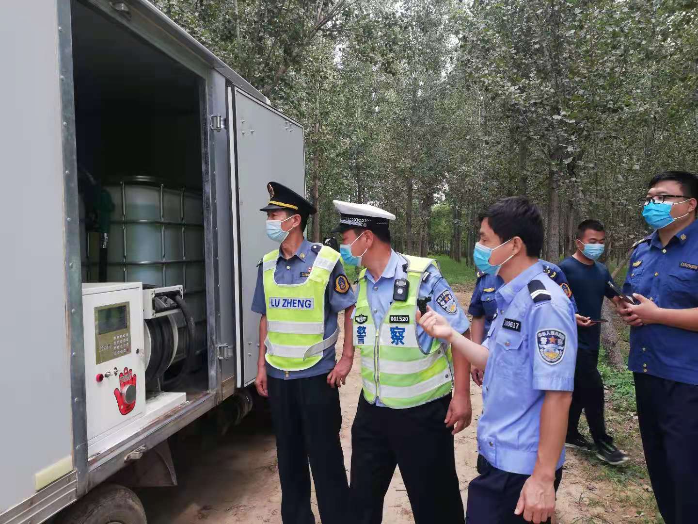 2021年8月26日9时30分许,大队领导刘建华、李志刚联合高速交警威县大队长赵国强排查至K1671+300两侧发现隔离栅外有违法加油车各一辆,违法加油车上均没有违法行为人。邱县大队马上联系威县交通局、商务局、威县交警,在等候威县政府有关部门人员时,违法行为人趁执法人员不备,悄悄接近广州方向的由面包车改装的车牌为冀E0489L违法加油车,并突然开走。刘建华、李志刚、赵国强三名执法人员在确保安全的情况下,迅速穿过高速公路赶到北京方向查看另一辆车牌为冀ERL053违法加油车,赶到后,看到有一名男子向车牌为冀ERL053违法加油车靠近,并发现几十米外停着车牌为冀E0489L违法加油车。该男子向高速路政、高速交警请求放过他和车辆,遭到严词拒绝。在威县交通局运政、商务局、交警等部门人员赶到后,11时10分将依法查处的两辆加油车在现场进行了移交。