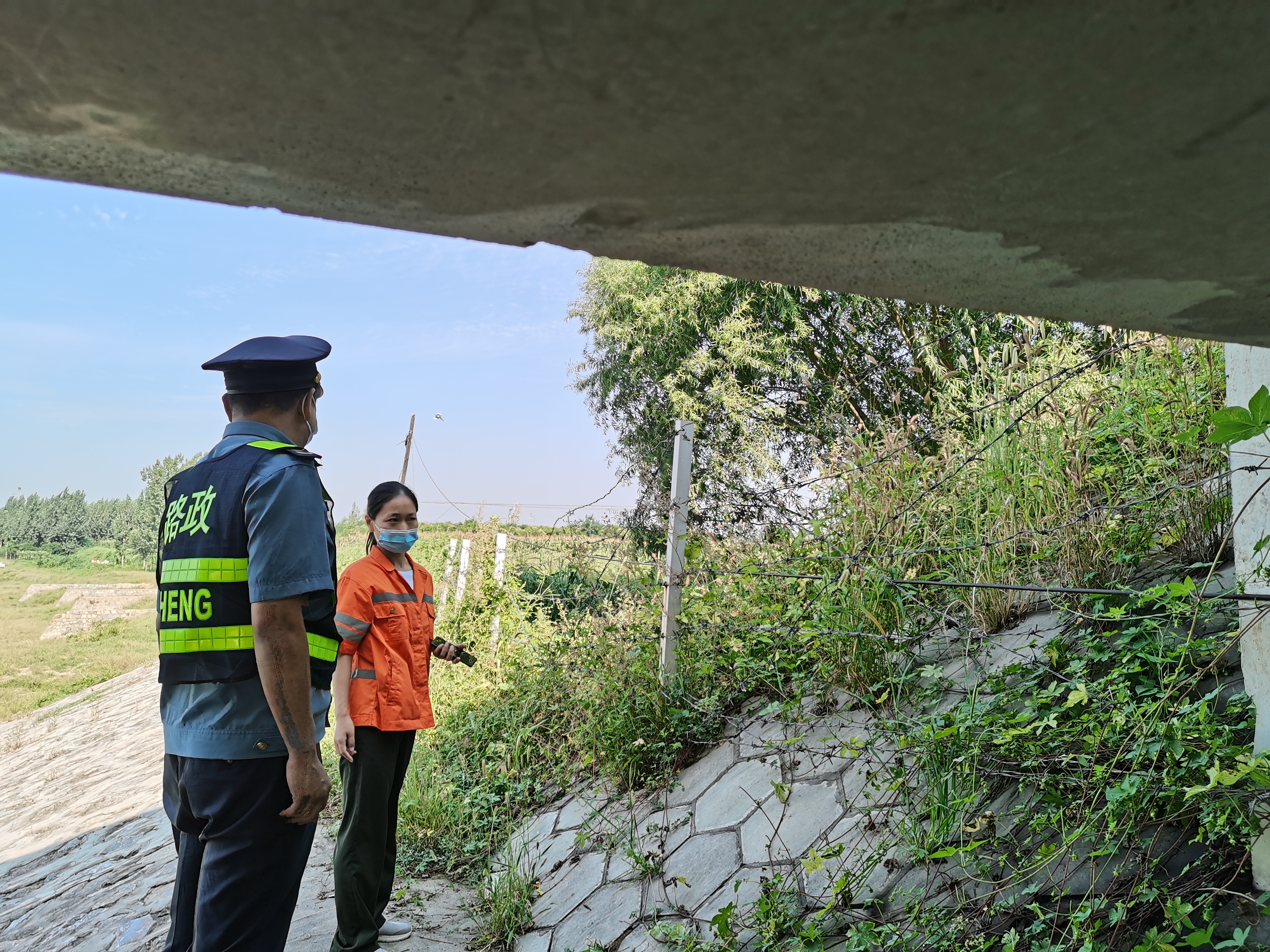 路政人员和养护人员对桥梁进行了检查。重点检查了桥面、桥头接缝开裂是否有增大,桥栏杆是否损坏、松动;桥墩是否有移位现象,桥梁是否有断板、裂缝是否加深,支架是否断裂等进行了仔细检查。对检查桥梁进行拍照存档,进一步完善桥梁档案。还检查了桥梁的泄水孔是否堵塞,桥涵下是否有农作物秸秆、木柴及其他堆积物等。