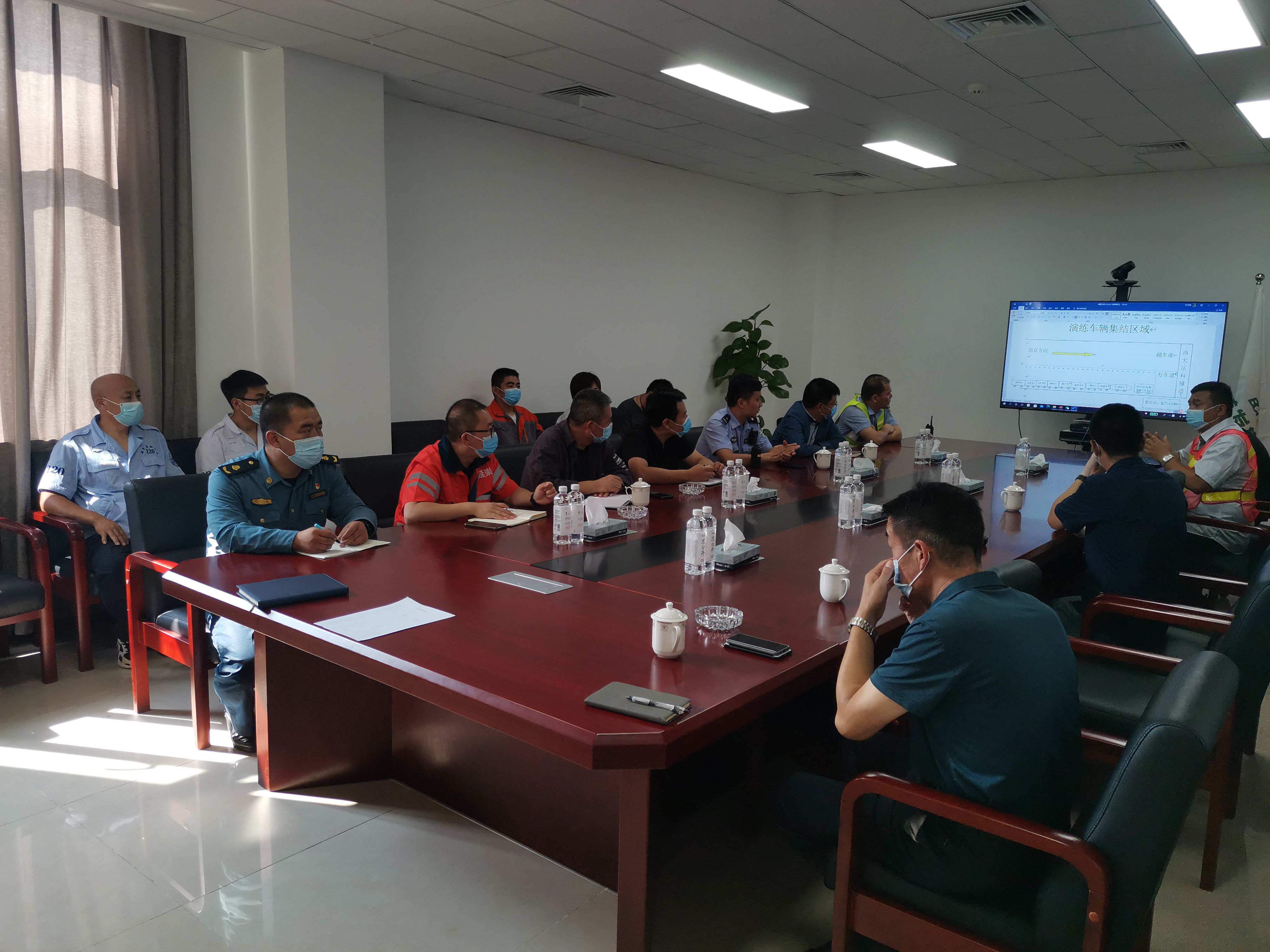 此次“隧道交通事故应急处置演练”专项会议,由北京首发集团组织,延崇筹建处各相关部门负责人、北京段高速交警负责人、张家口段高速交警负责人、赤城路政大队负责人参加,会上各部门负责人共同协商应急处置预案、积极发表各方意见,完善了应急处置预案,确立了应急组织机构,明确了各部门应急处置职责。会后,各部门根据应急演练预案进行了“隧道交通事故应急处置预演”。从发现事故、启动应急预案,到开展应急抢险救援、救护、现场勘查等环节,各部门迅速响应、积极配合,各环节衔接通畅、处置得当,快速高效的完成了应急处置预演活动。