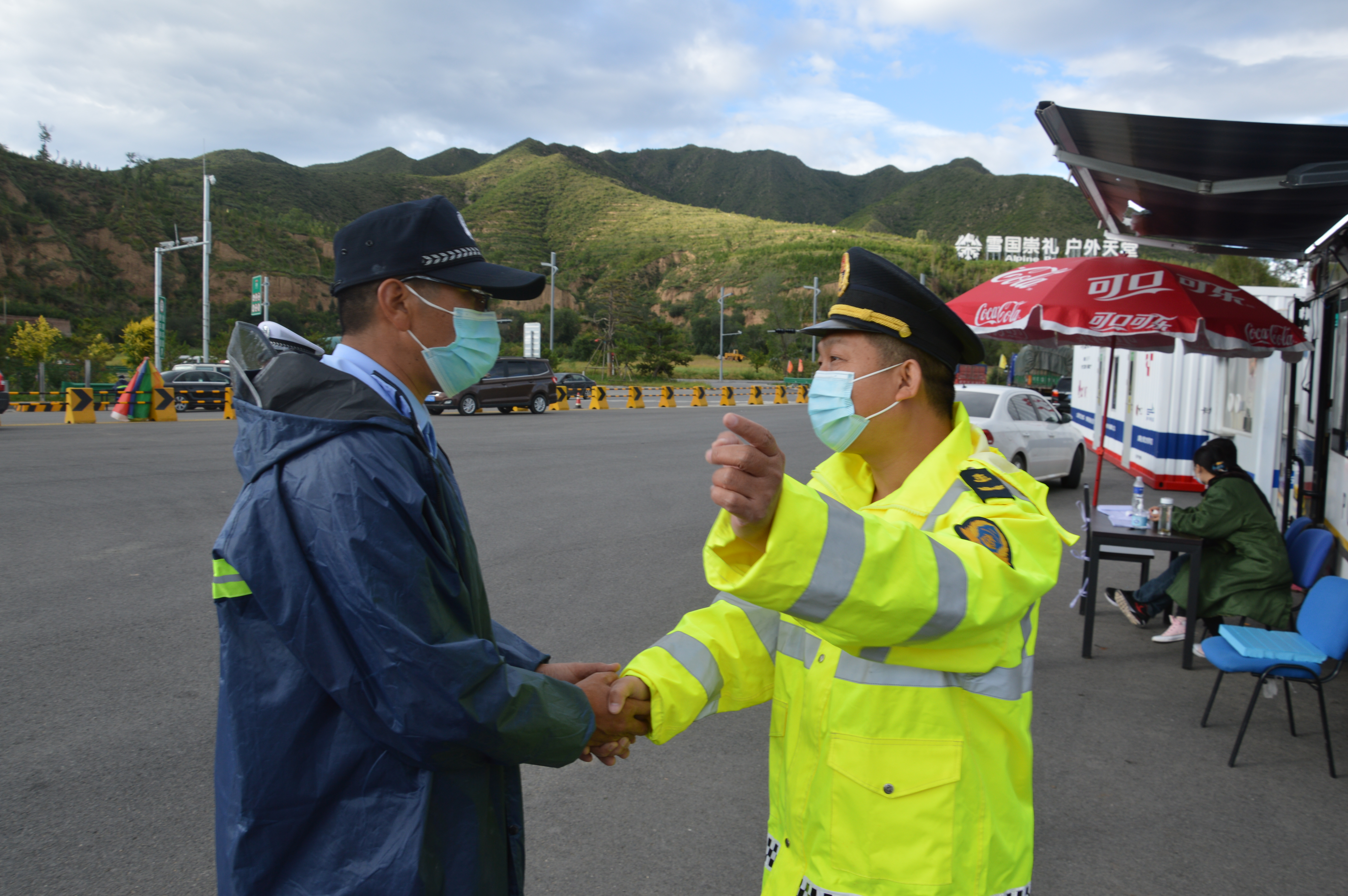 四、大队主动与医护人员、地方公安在高速出入口对过往车辆进行体温测试,对外地车辆进行登记,全力做好高速出入口疫情防疫工作。